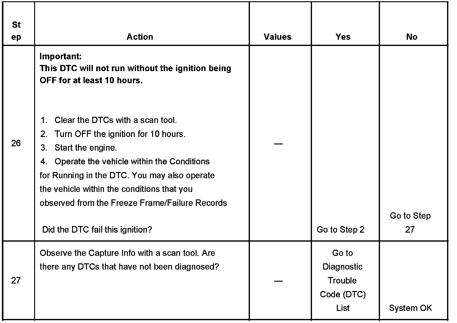 - A current DTC, Last Test Failed, clears when the diagnostic runs and passes.