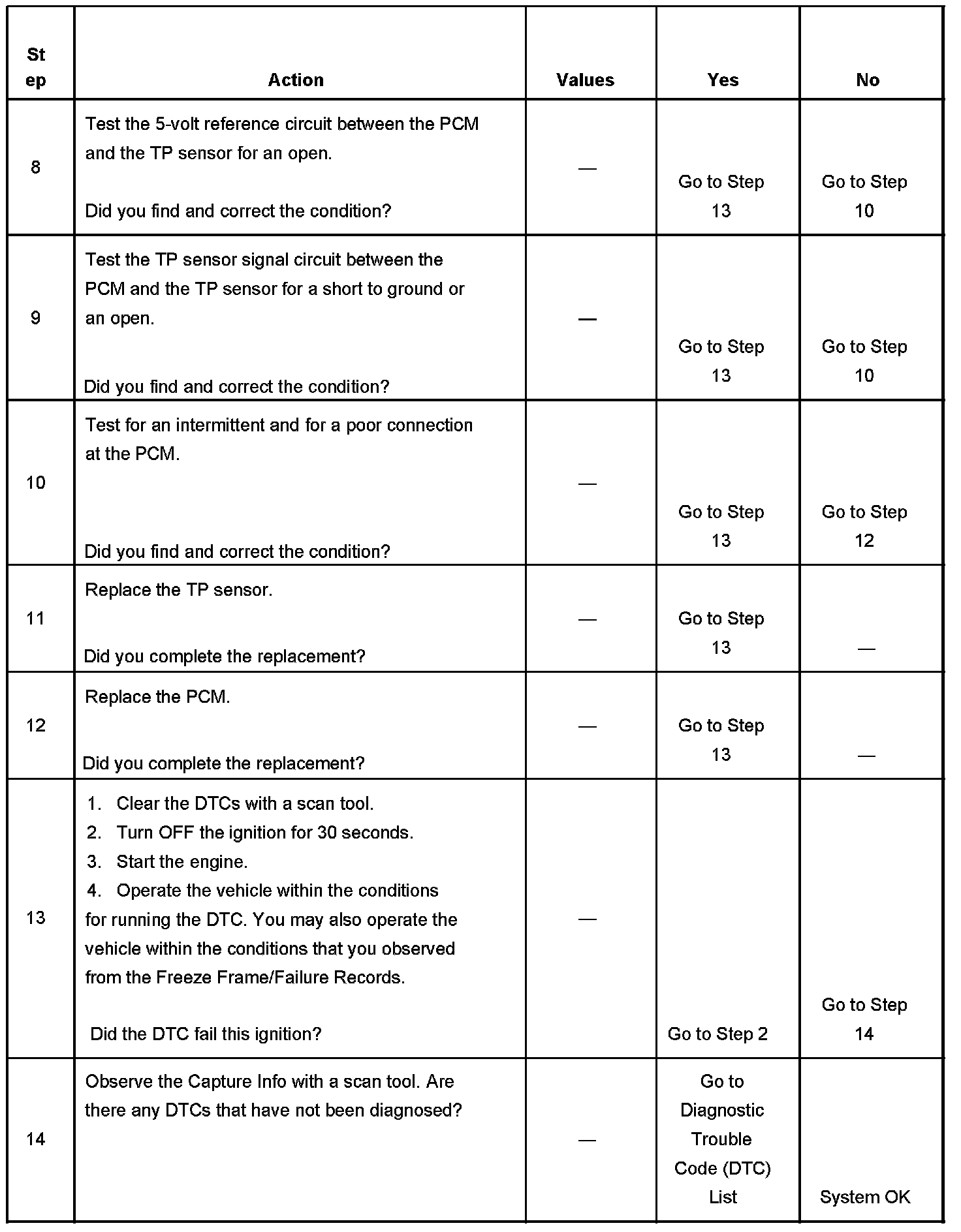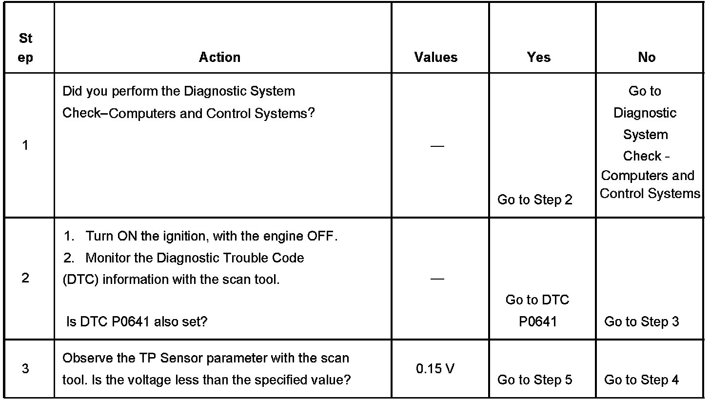 The PCM detects that the TP sensor voltage is less than 0.15 volt for more than 1 second.
