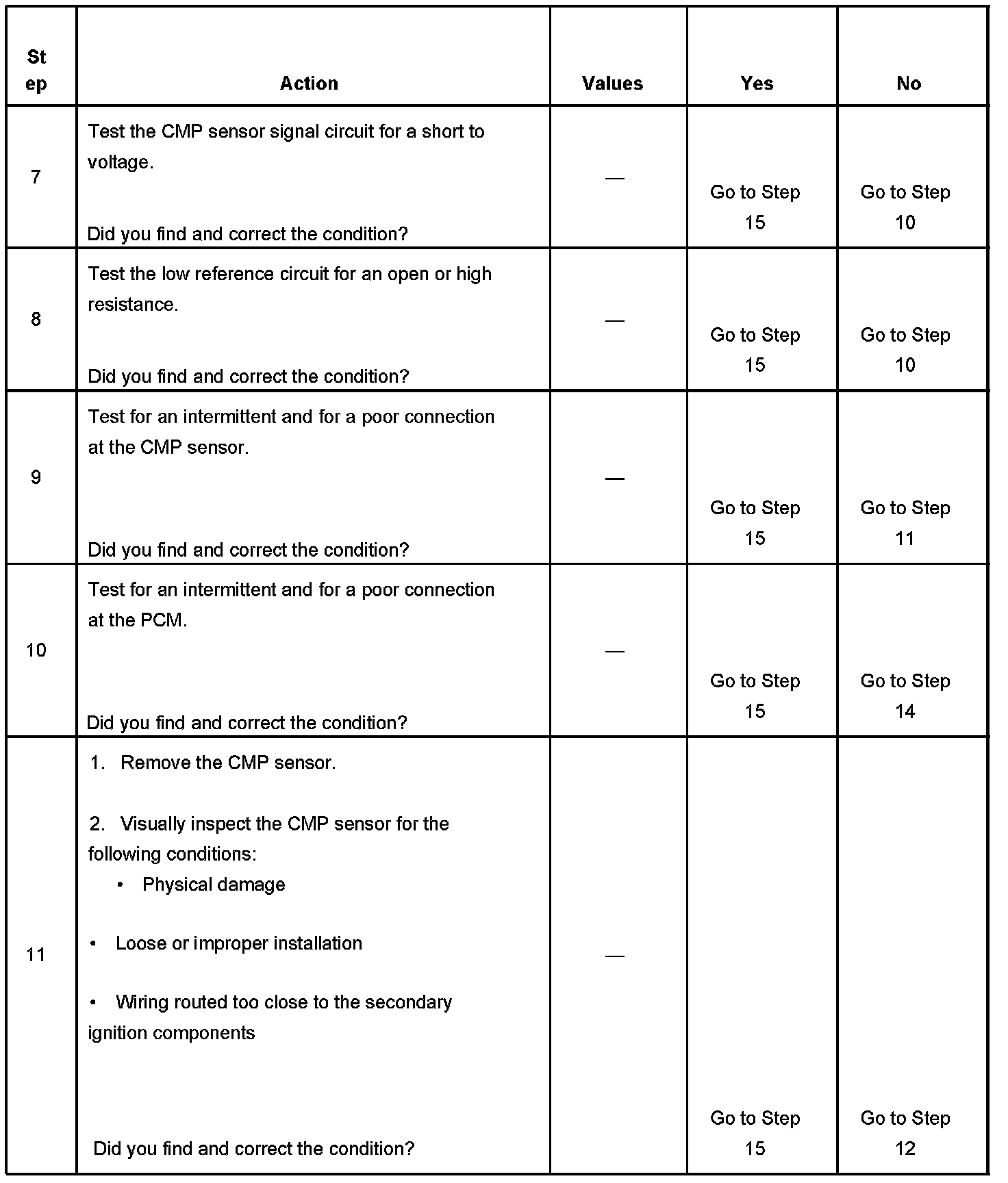 The PCM detects that the CMP sensor signal is high for 1.5 seconds.