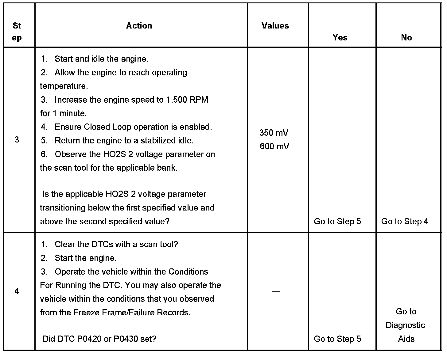 - The PCM measures the time necessary for the rear HO2S voltage to cross a reference lean-to-rich threshold, and the time necessary for the front HO2S voltage to cross the same lean-to-rich threshold. The difference between the front HO2S time and the rear HO2S time indicates the oxygen storage capacity of the catalyst. If the PCM detects that this time difference is less than a predetermined value, DTC P0420 for bank 1 or DTC P0430 for bank 2 sets.