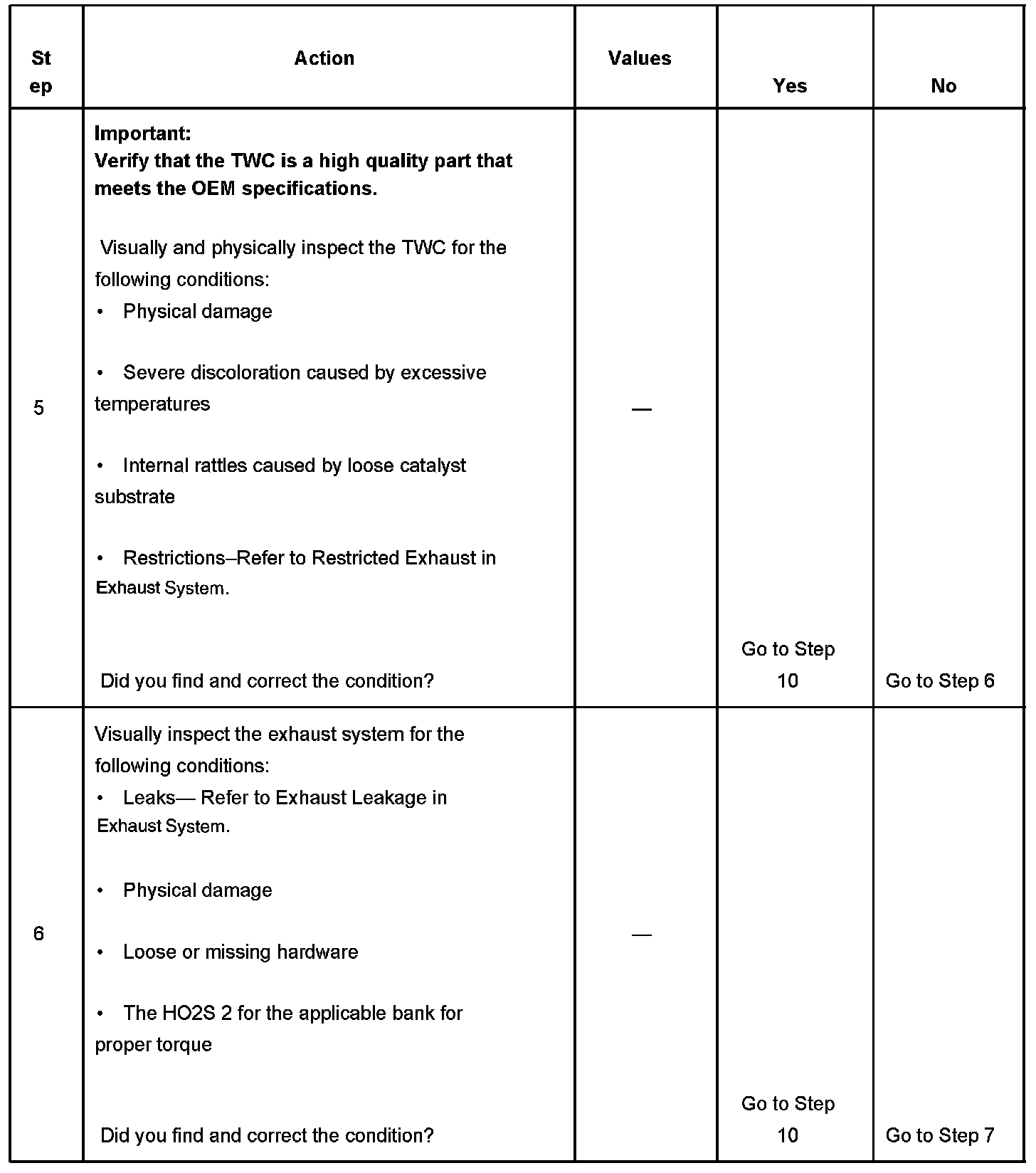 6. This steps inspects for conditions than can cause the TWC efficiency to appear degraded.