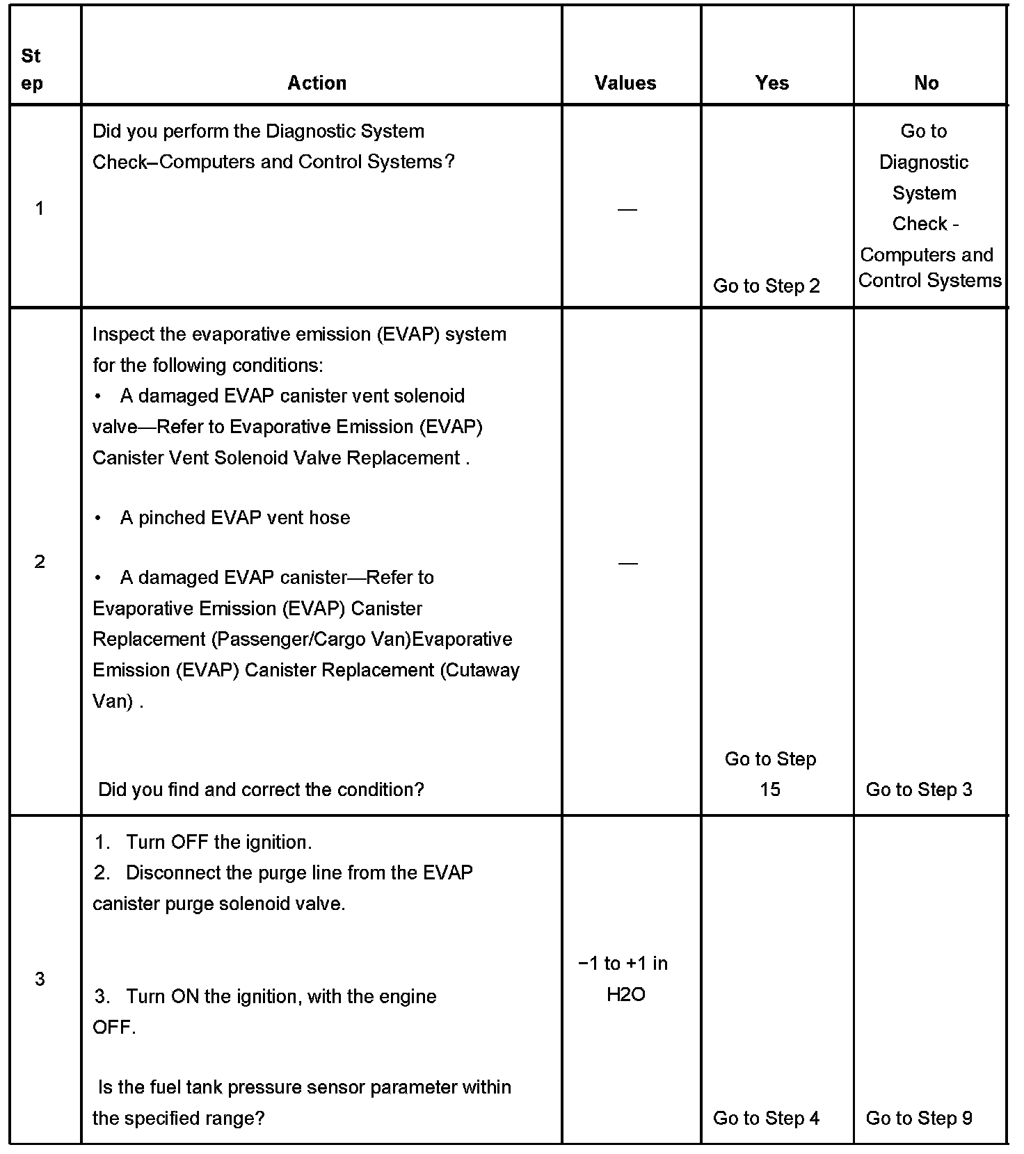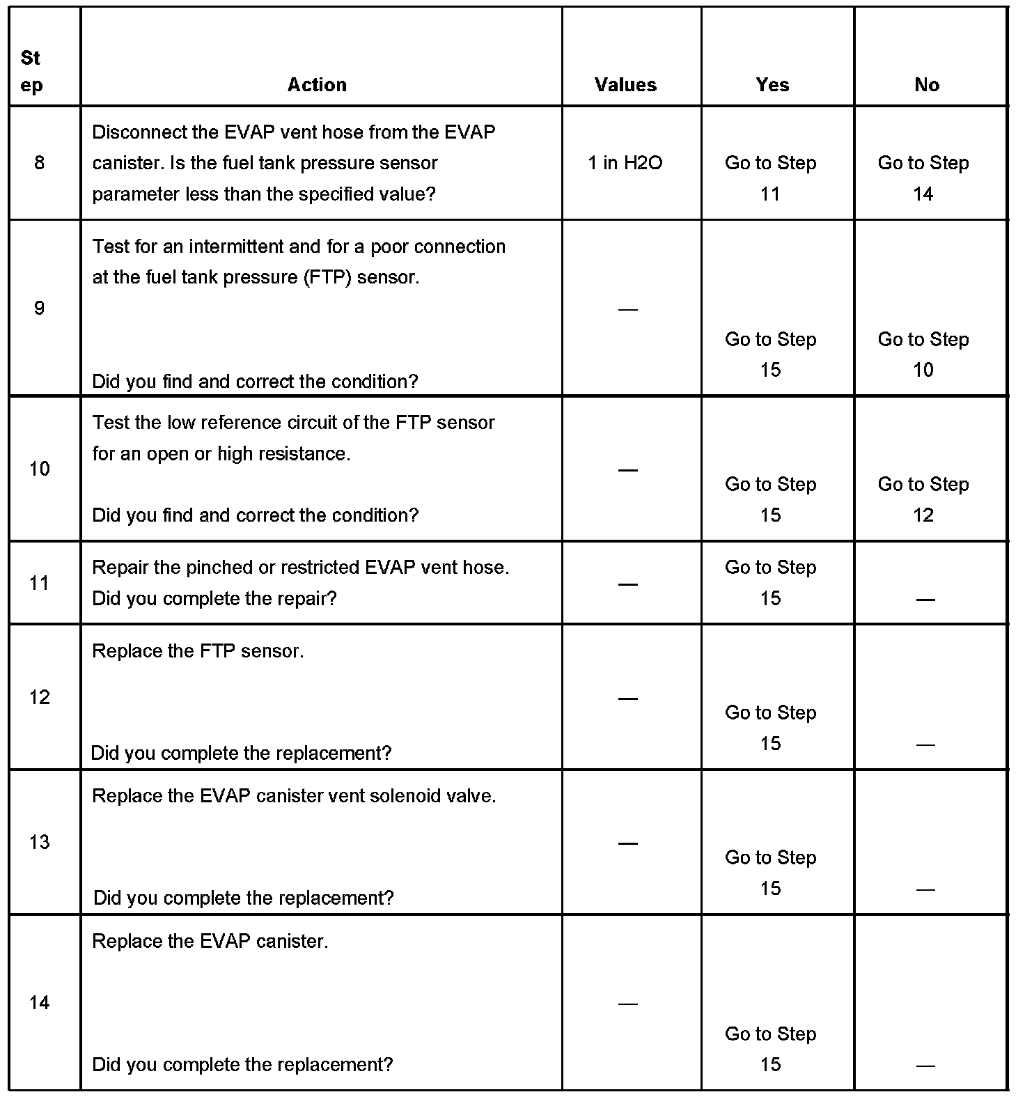 - The fuel tank pressure sensor is less than -10 inches H2O.