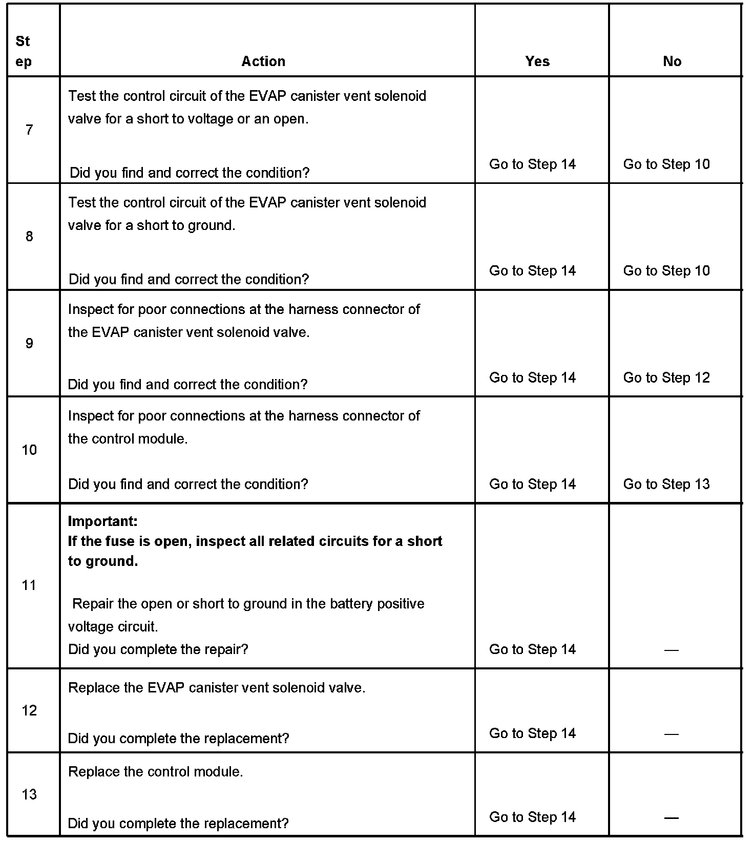6. This step tests if the EVAP canister vent solenoid valve control circuit is grounded.