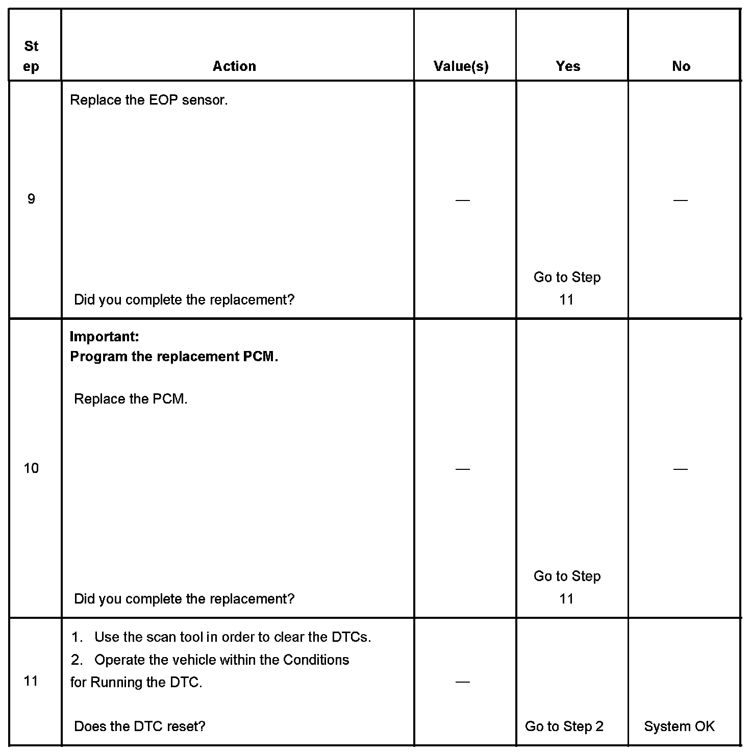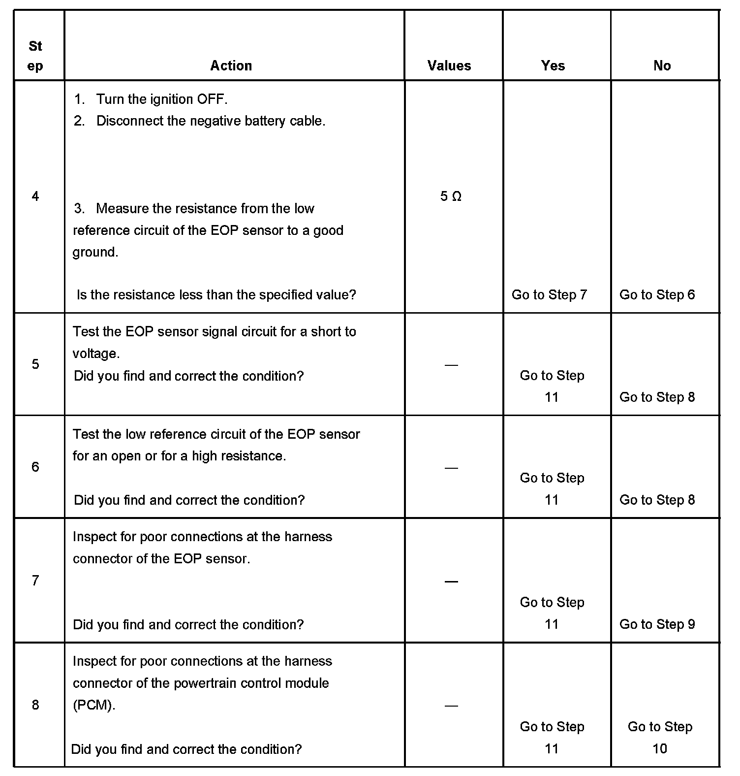 - The PCM detects that the EOP sensor signal circuit is greater than 4.6 volts.