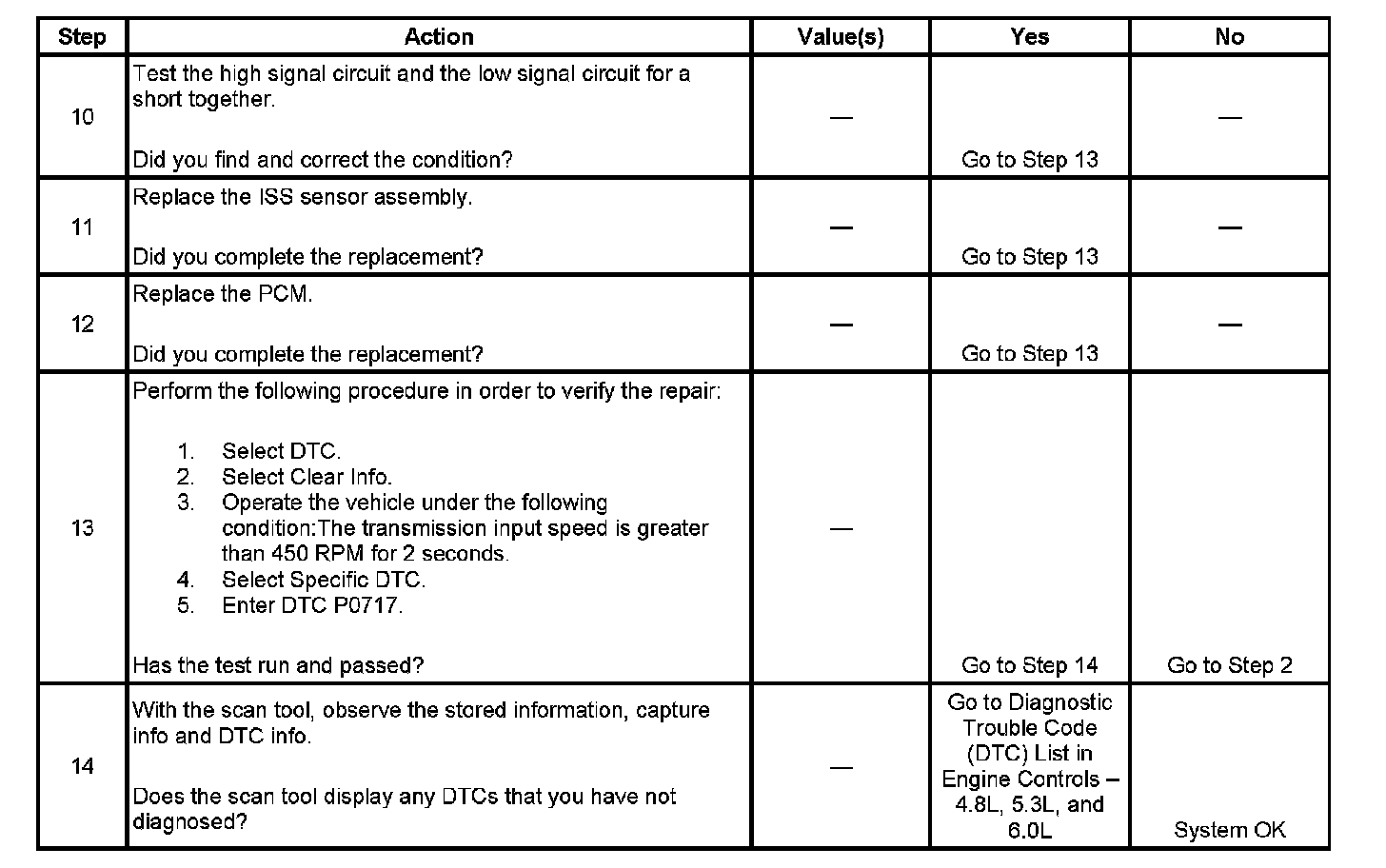 When the PCM detects a low or no input speed during high vehicle and high engine speeds, then DTC P0717 sets. DTC P0717 is a type C DTC. For California emissions vehicles, DTC P0717 is a type B DTC.