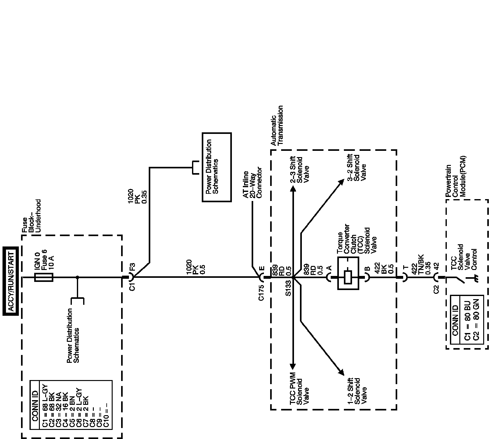 The torque converter clutch (TCC) solenoid valve is an electrical device that is used with the torque converter clutch pulse width modulation (TCC PWM) solenoid valve in order to control TCC apply and release. The TCC solenoid valve attaches to the transmission case assembly extending into the pump cover. The TCC solenoid valve receives ignition voltage through the Ignition 0 voltage circuit. The powertrain control module (PCM) controls the solenoid by providing the ground path on the TCC solenoid valve control circuit. The PCM monitors the throttle position sensor voltage, the vehicle speed, and other inputs in order to determine when to energize the TCC solenoid valve.
