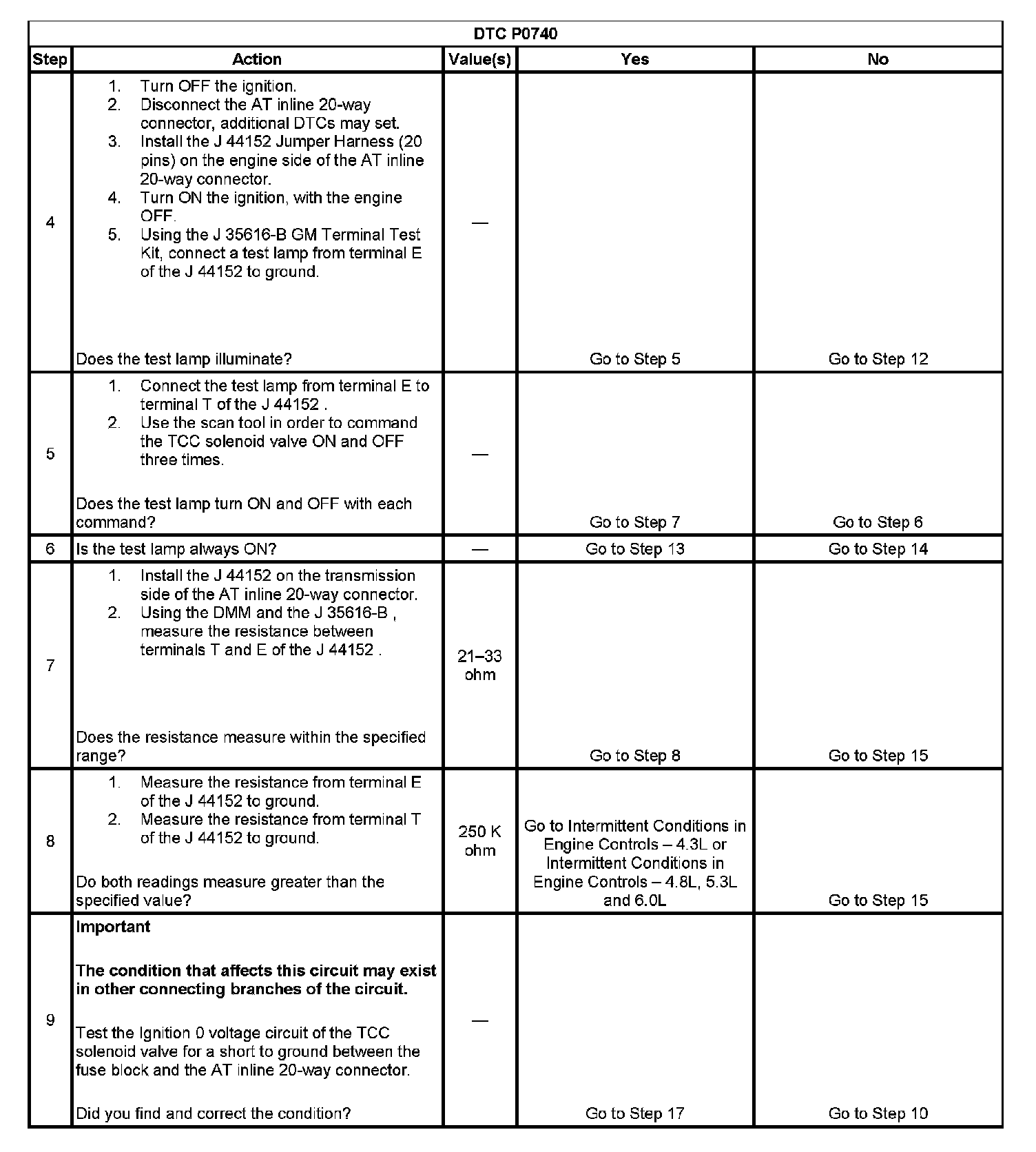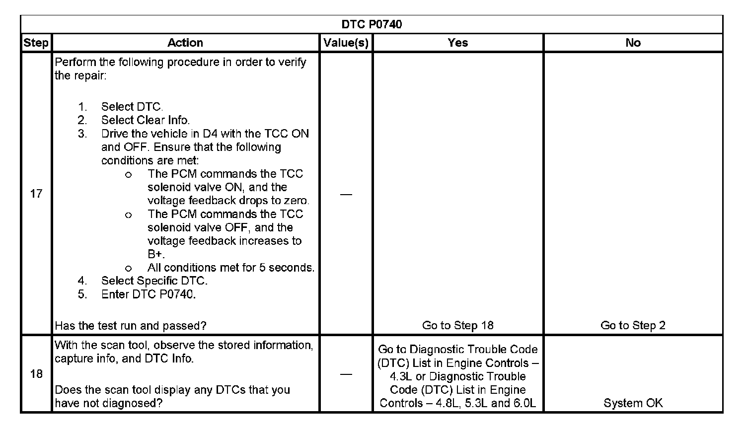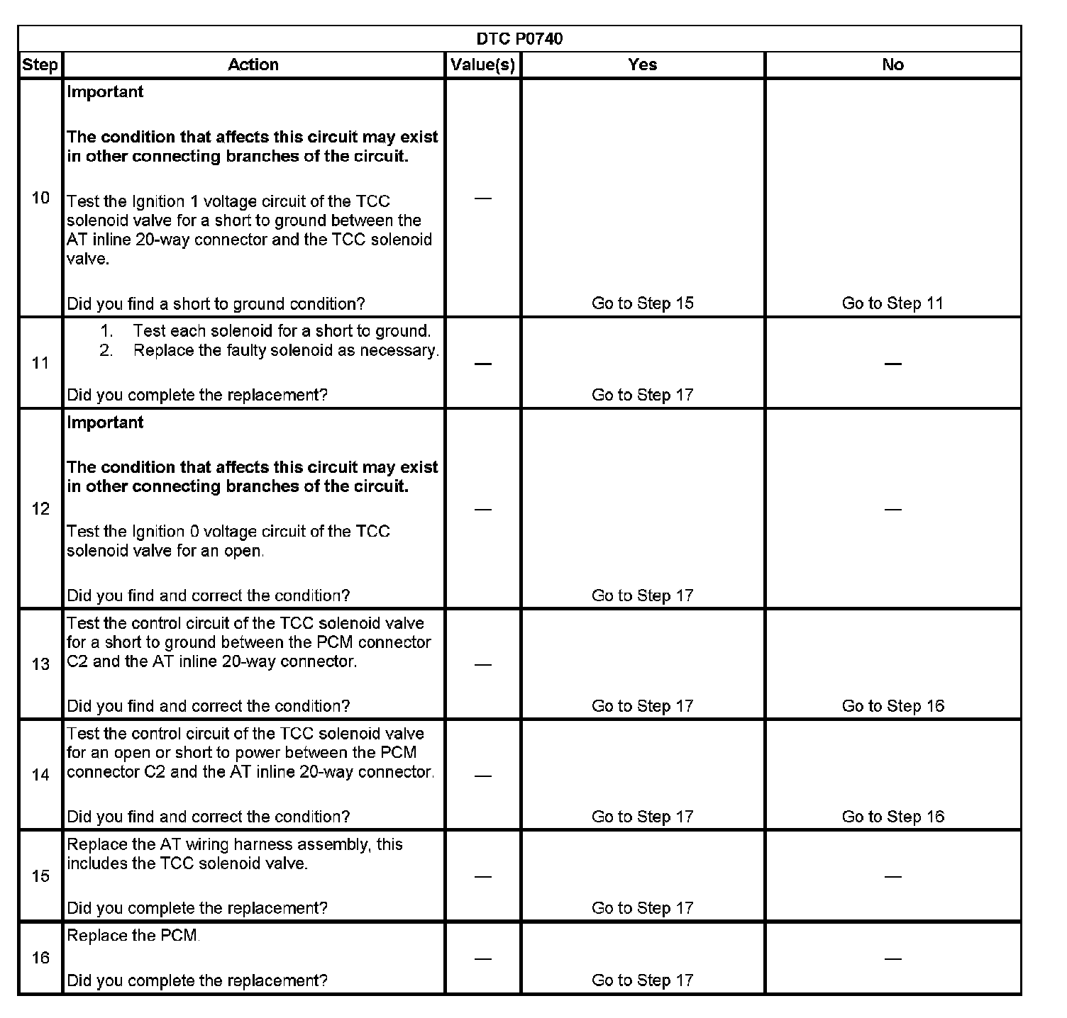 When the PCM detects a continuous open, short to ground or short to power in the TCC solenoid valve circuit, then DTC P0740 sets. DTC P0740 is a type B DTC.