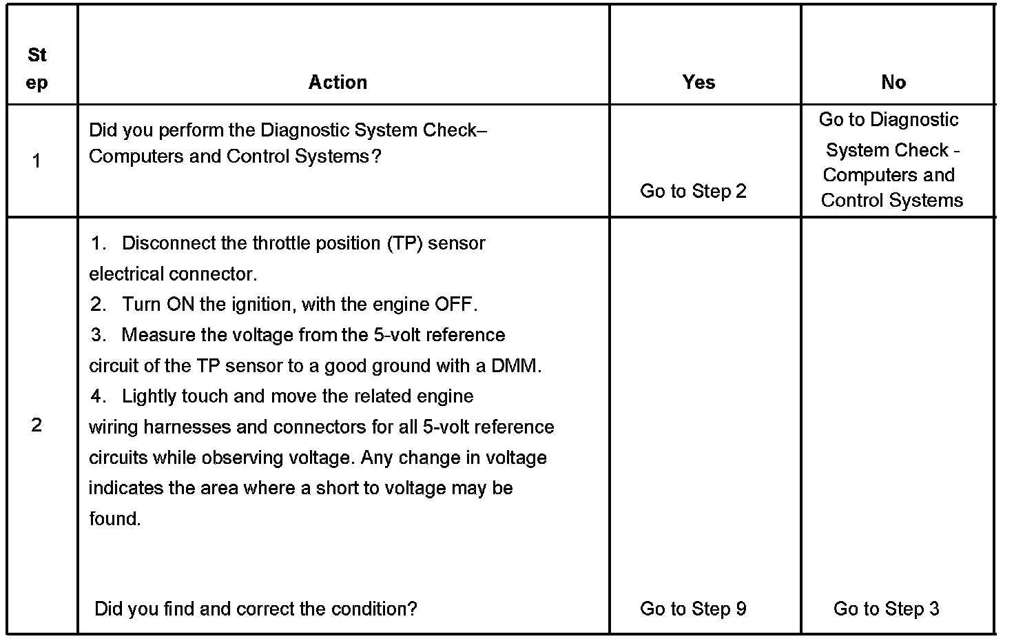 The number below refers to the step number on the diagnostic table: