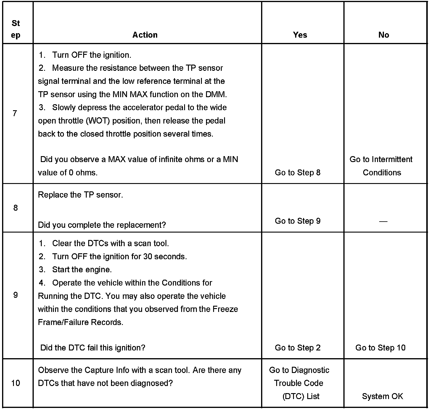 7. This test will determine an intermittent faulty TP sensor utilizing the MIN MAX, 100 millisecond capture mode on the DMM.