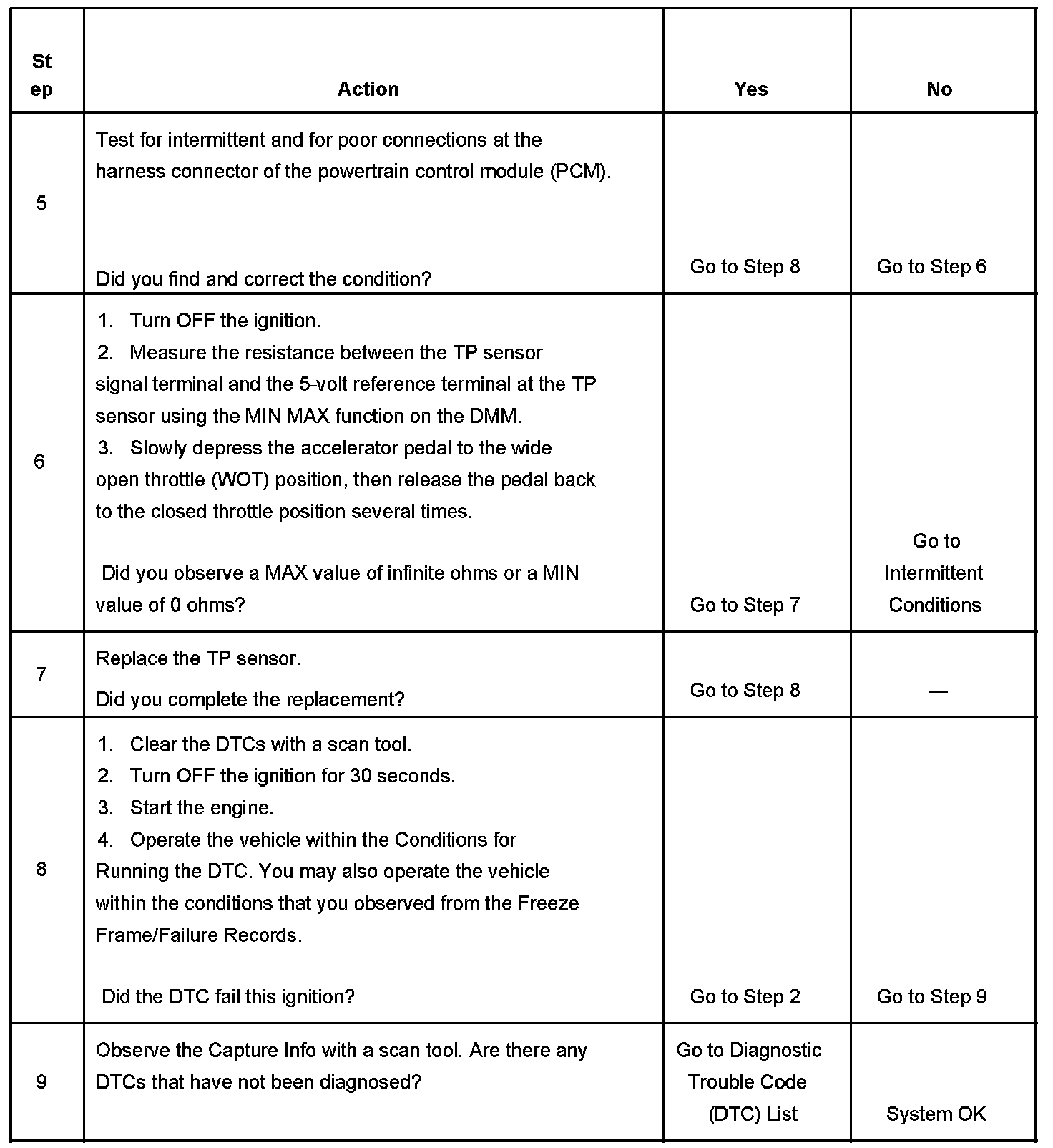The PCM detects that the TP sensor voltage is intermittently less than 0.15 volts.