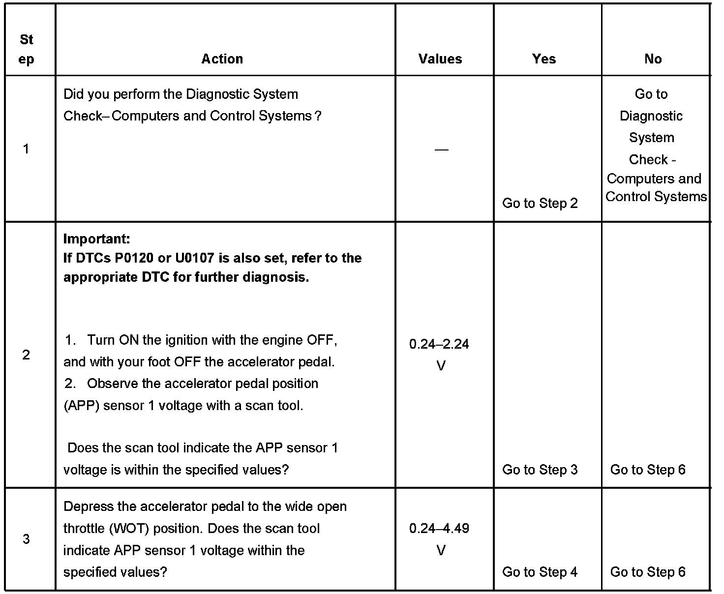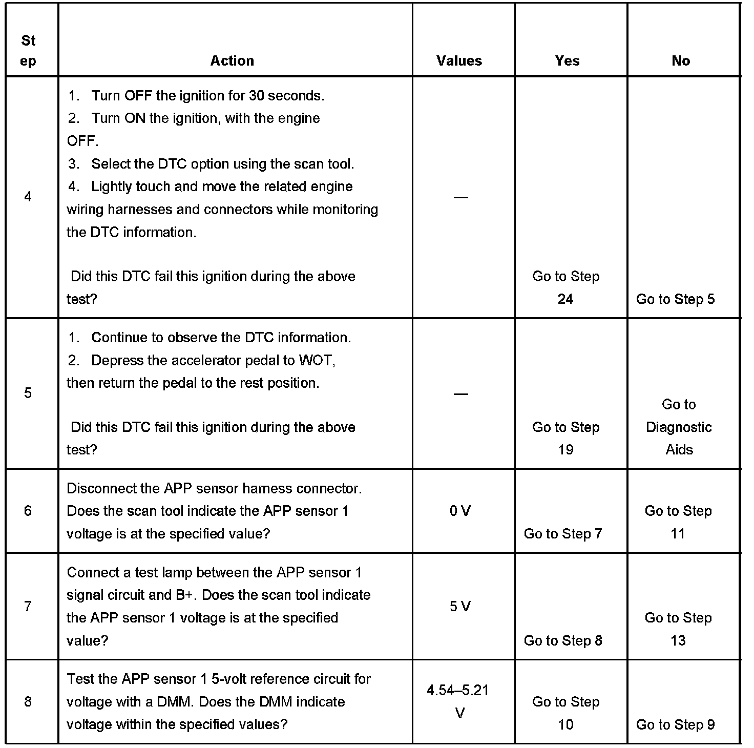 - The APP sensor 1 voltage is less than 0.24 volts or more than 4.49 volts.