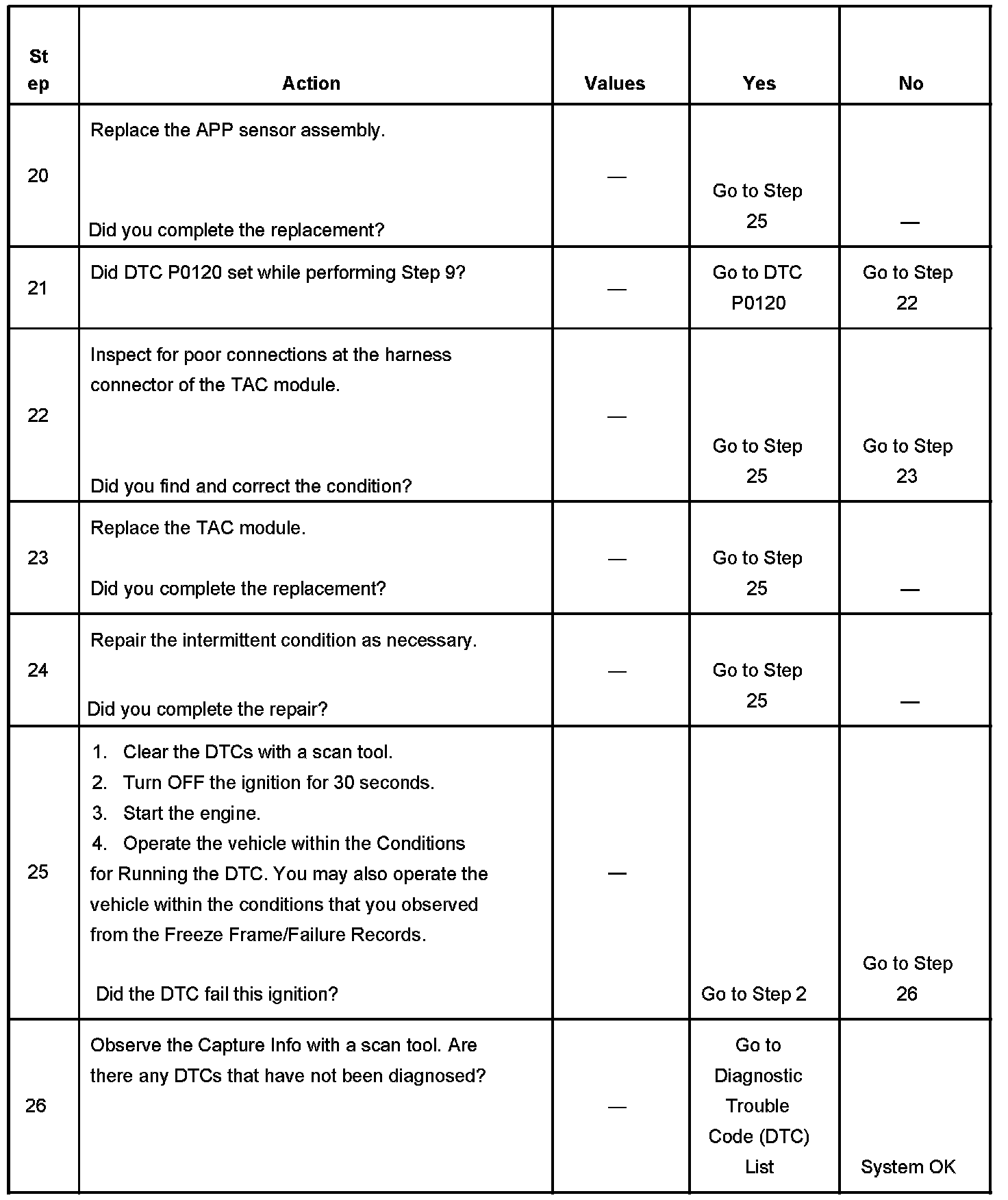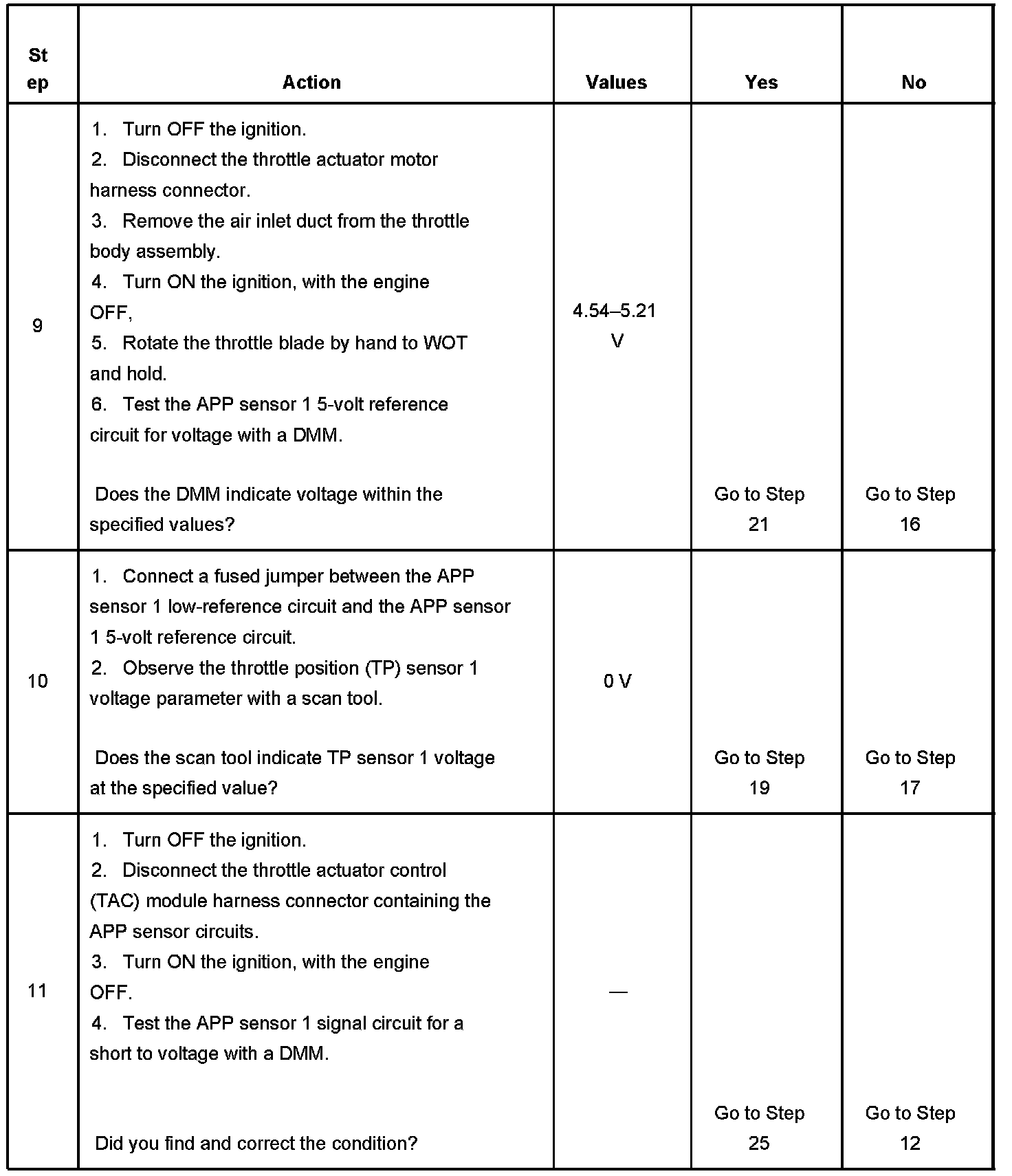 - The APP indicated angle is limited to 0 percent. The control module only allows the engine to idle.