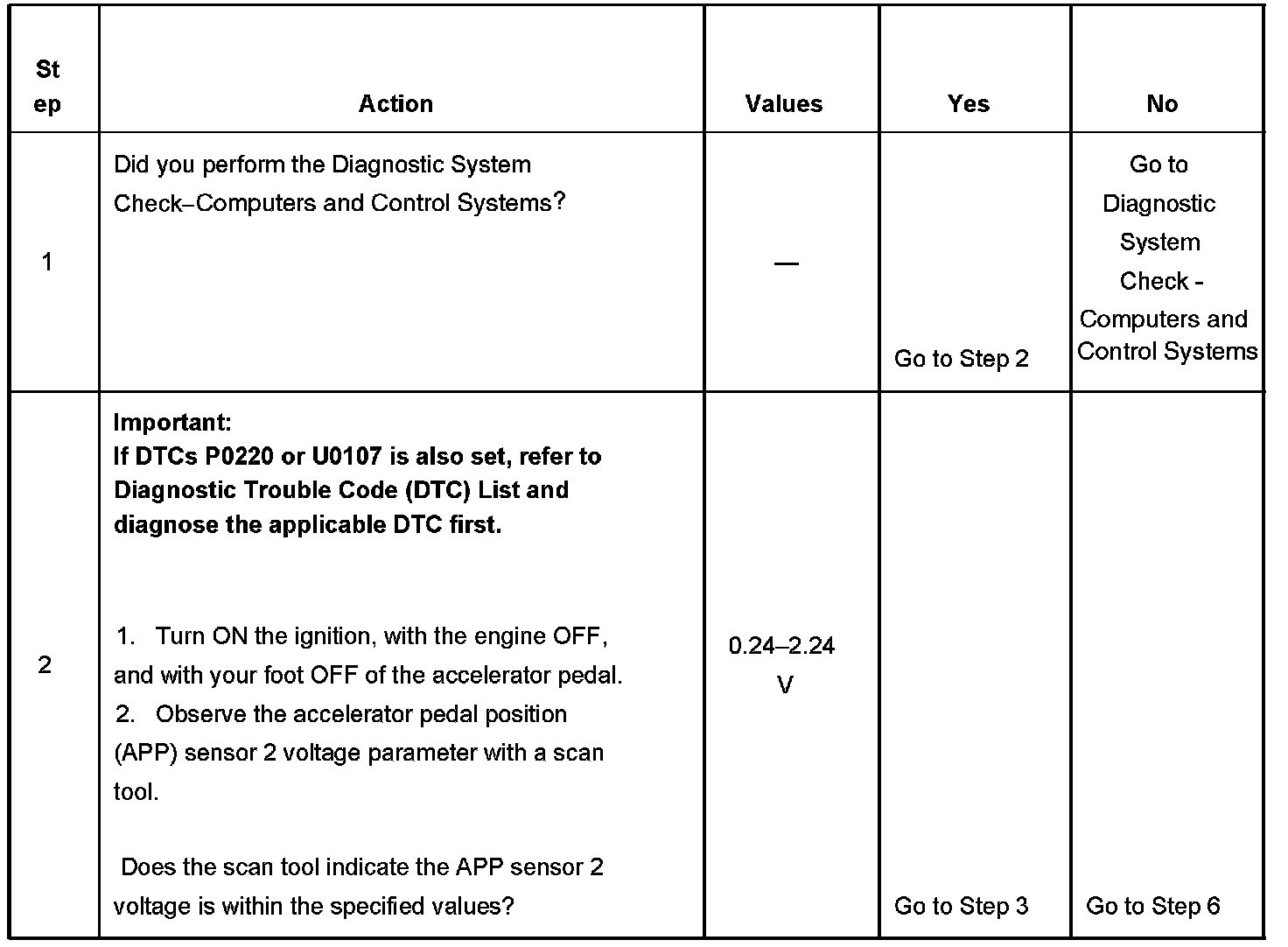 2. The throttle position (TP) sensor 2 and the APP sensor 2 share a common 5-volt reference source. Diagnose DTC P0220 first if that DTC is also set.