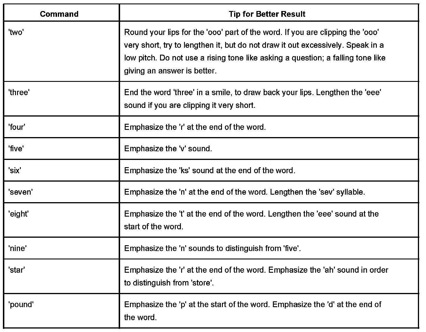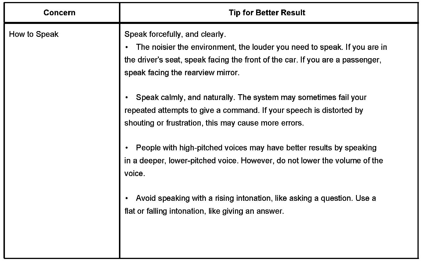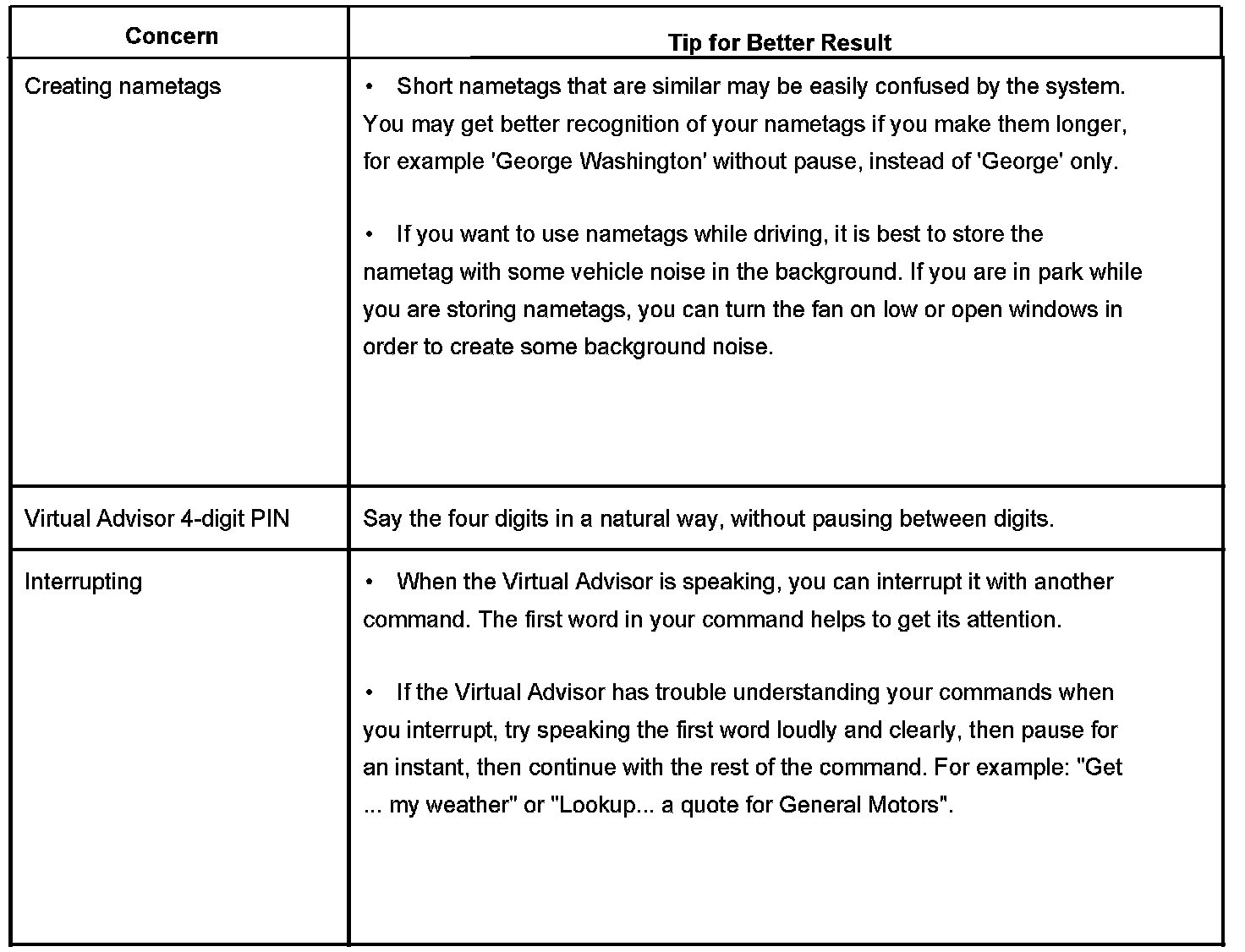 The OnStar(R) speech recognition systems use speech technology that is designed to understand a wide range of American English speakers. Although there is no one right way to speak English, the system will work best when users try to modify their pronunciation should they encounter difficulty. Users who do not obtain good results are advised to try the tips and workarounds found in this section.