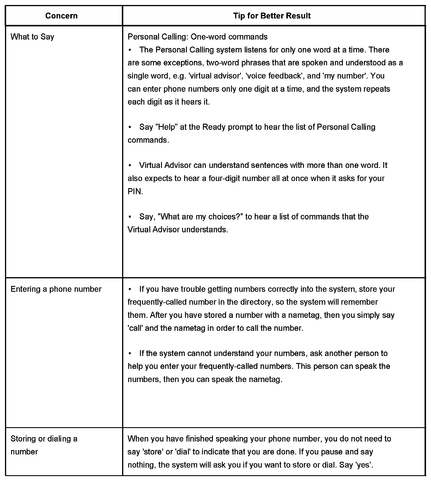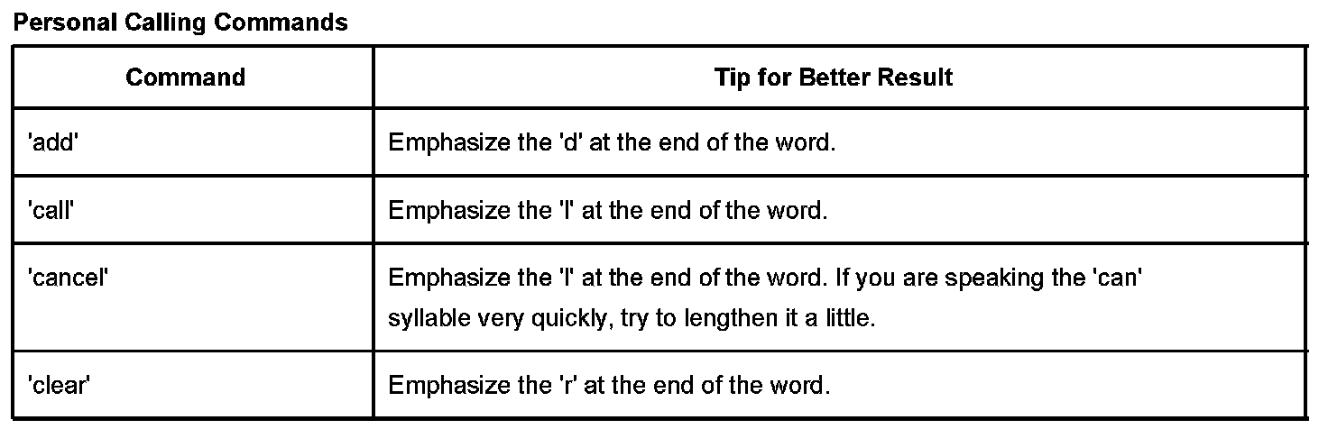 - Personal Calling uses a speech recognition system that resides in the vehicle. When the user presses the dot button, the system states, Ready, and listens for the user's command. The user can speak commands to control the hands-free phone.