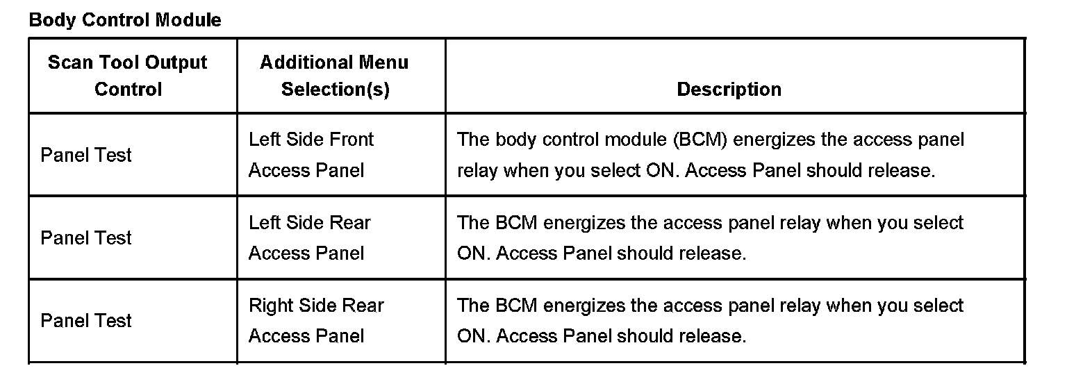 Scan Tool Output Controls - Body Control Module: