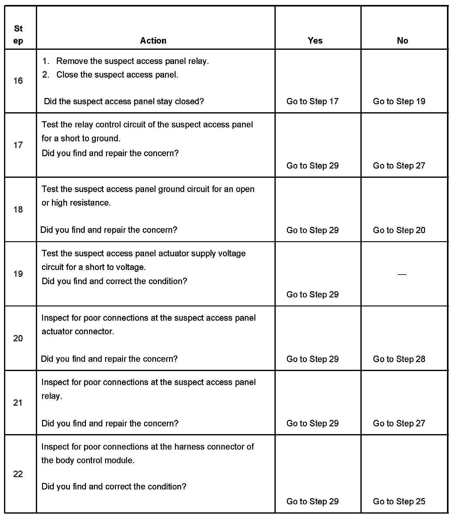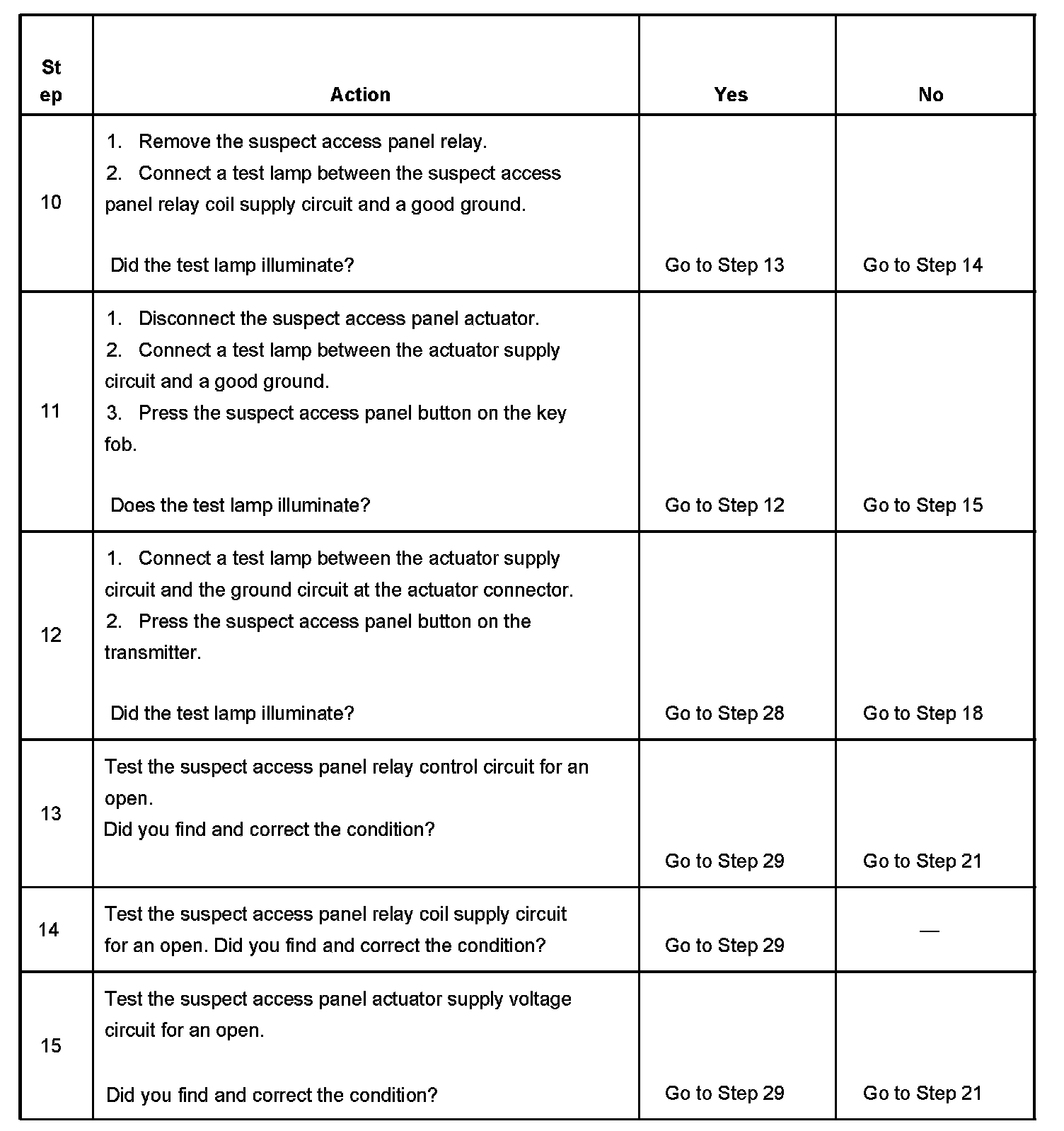 14. An open RFA fuse may be caused by a short to ground in the access panel actuator voltage supply circuit or a shorted access panel actuator.