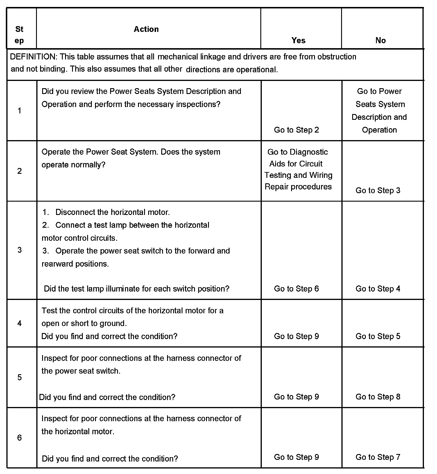 Power Seat Does Not Move Forward/Rearward