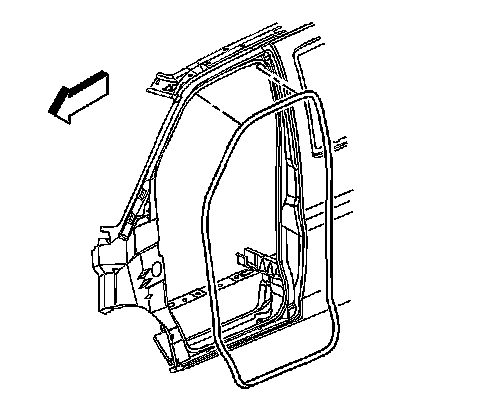 2. Remove the front door upper pillar garnish molding. Refer to Garnish Molding Replacement - Upper Pillar (Garnish Molding Replacement - Upper Pillar) in Interior Trim.