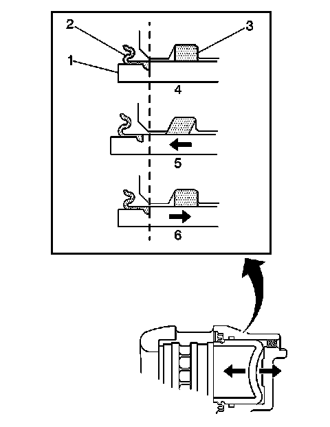 5. If the caliper piston (1) did not exhibit unrestricted and even movement during brake system apply and/or release, the piston square seal (3) may be worn or damaged and the caliper may require overhaul or replacement.