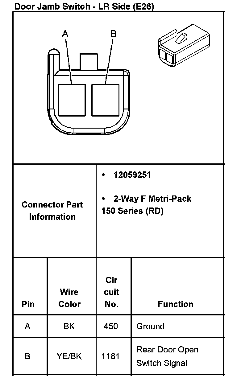 Door Jamb Switch - LR Side (With RPO Code E26):