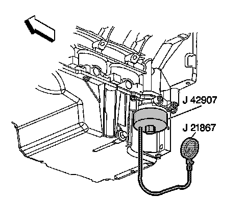6. Remove the oil filter and install the J42907.