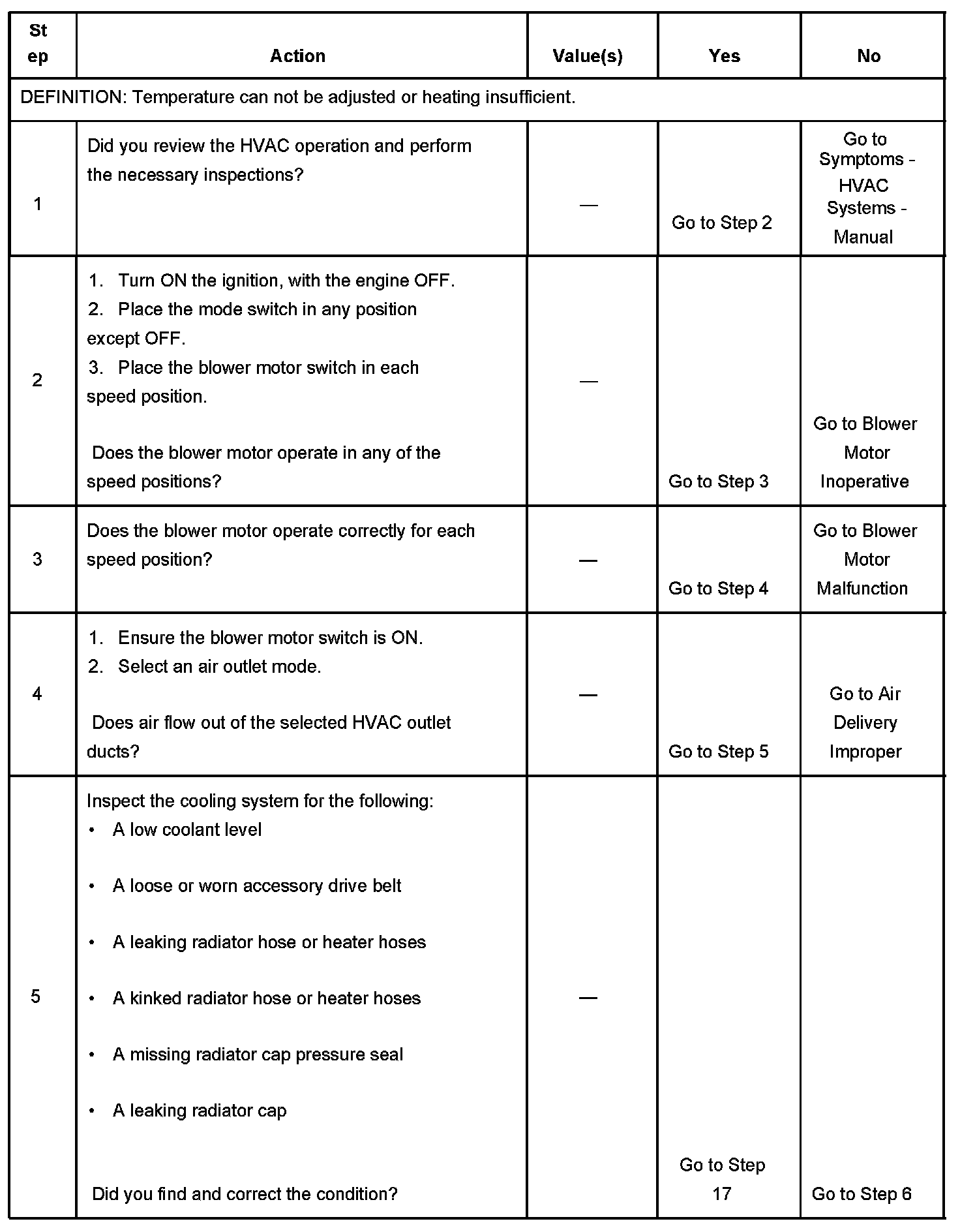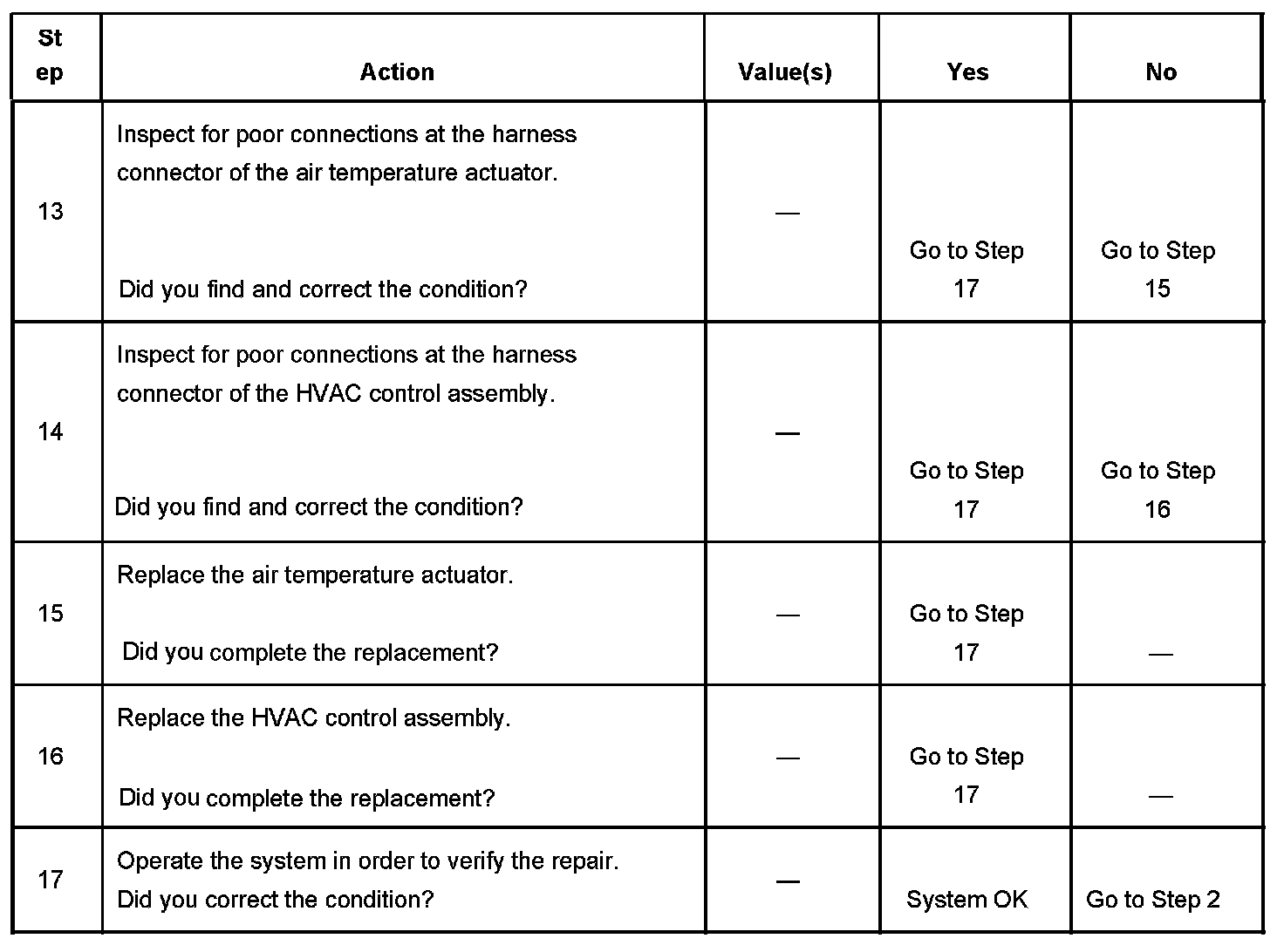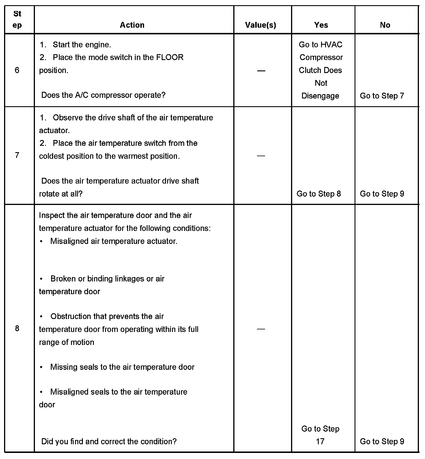 The numbers below refer to the step numbers on the diagnostic table.
