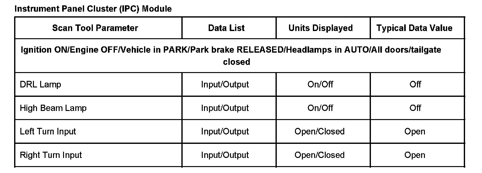 Scan Tool Data List - Instrument Panel Cluster (IPC) Module