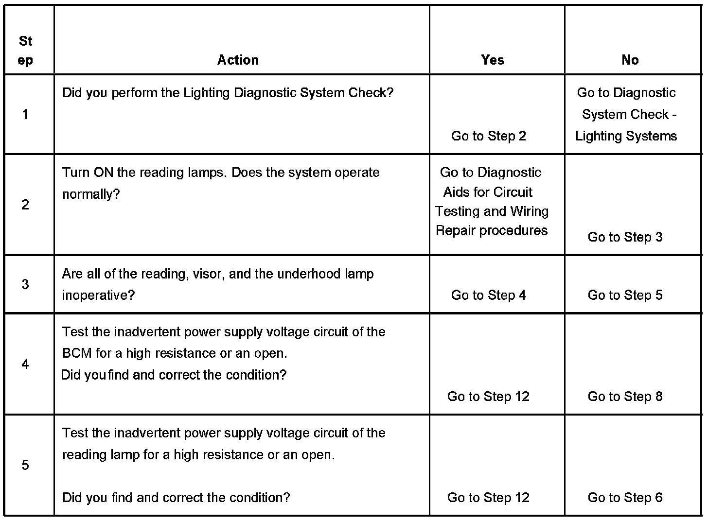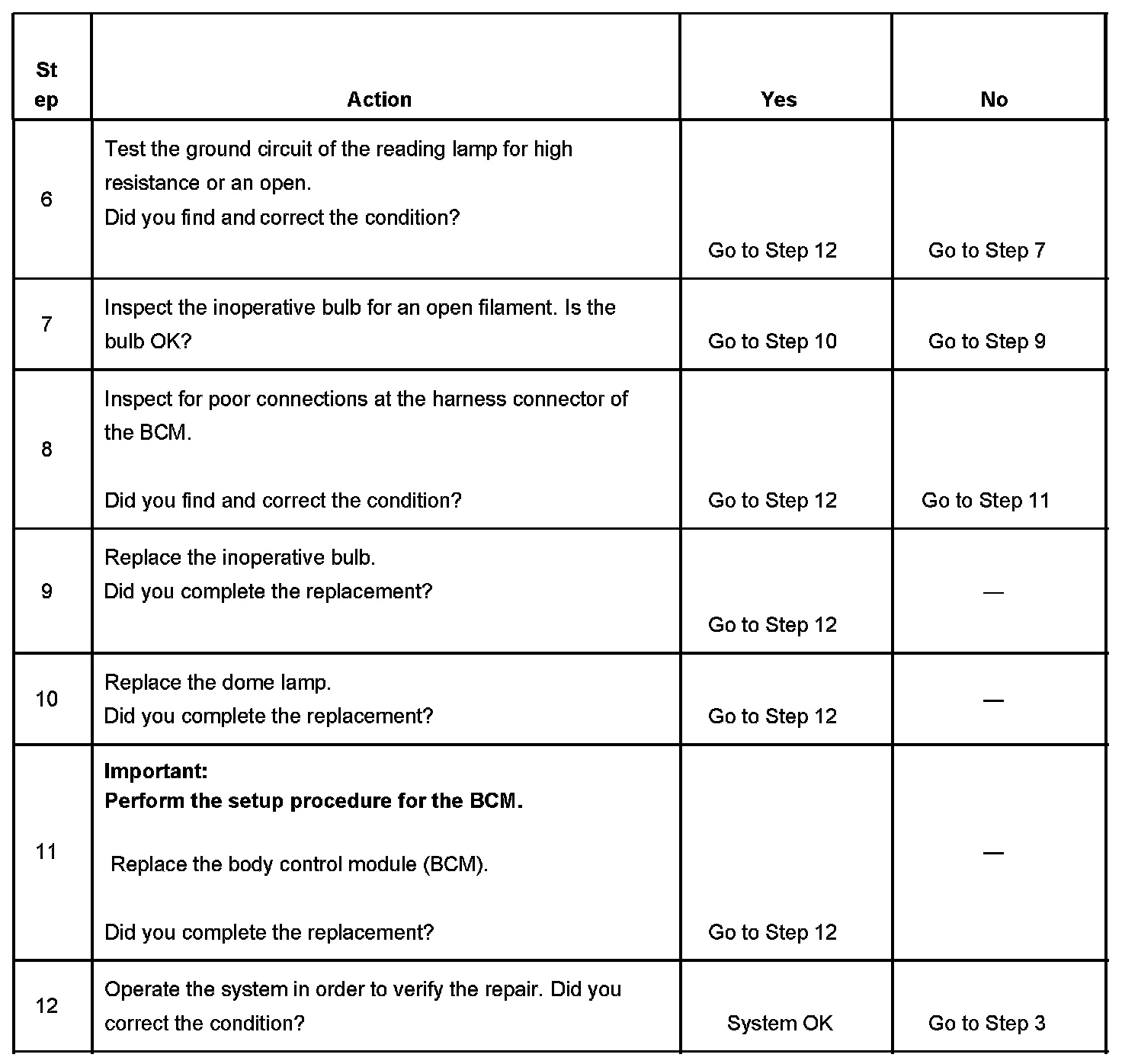 Reading Lamp Inoperative