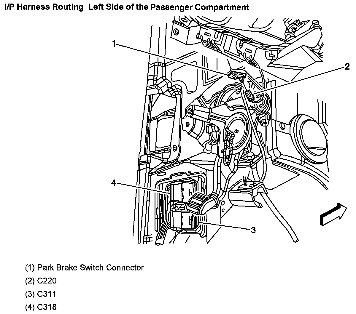 I/P Harness Routing Left Side Of The Passenger Compartment:
