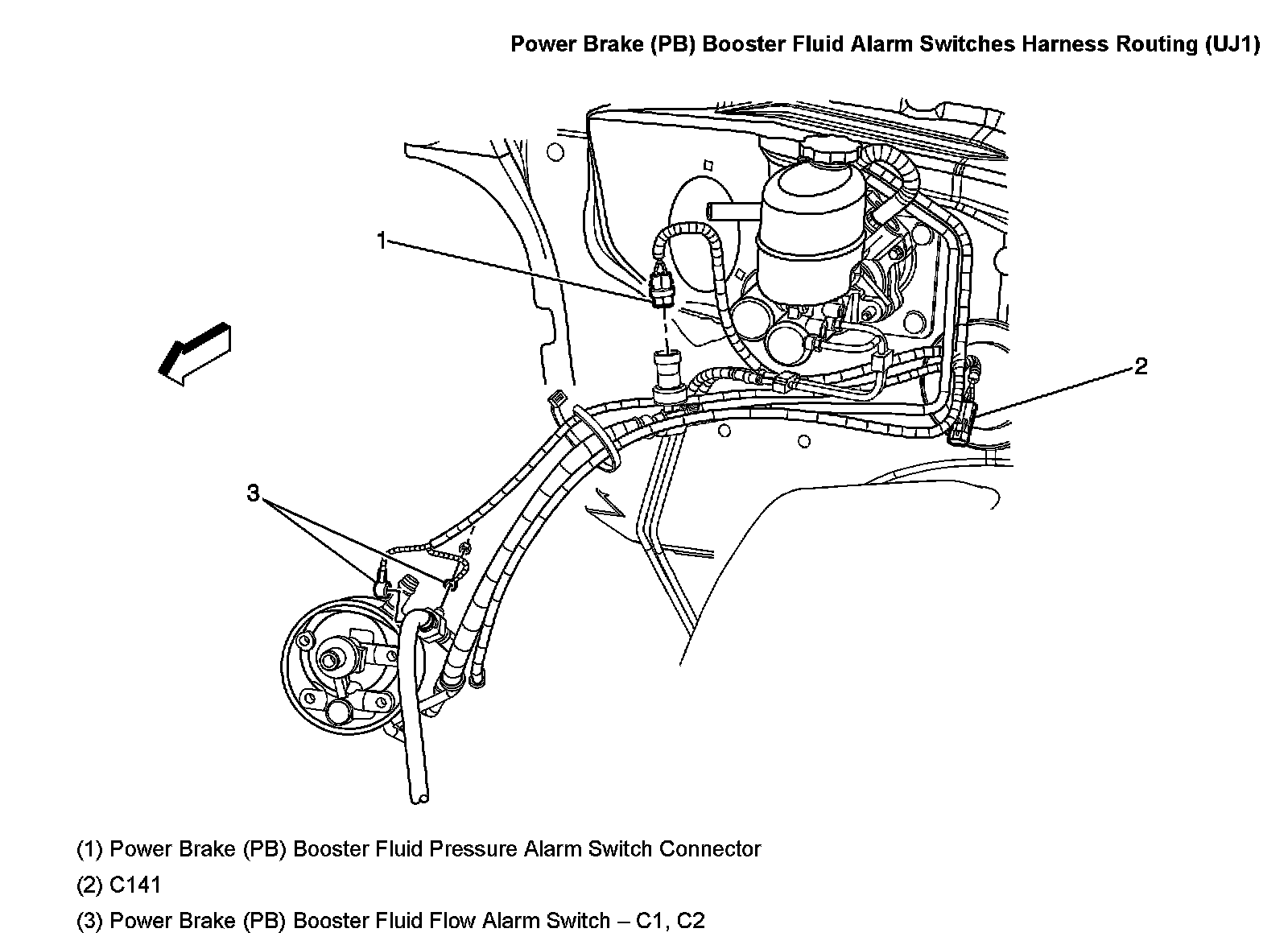 Power Brake (PB) Booster Fluid Alarm Switches Harness Routing (With RPO Code UJ1):
