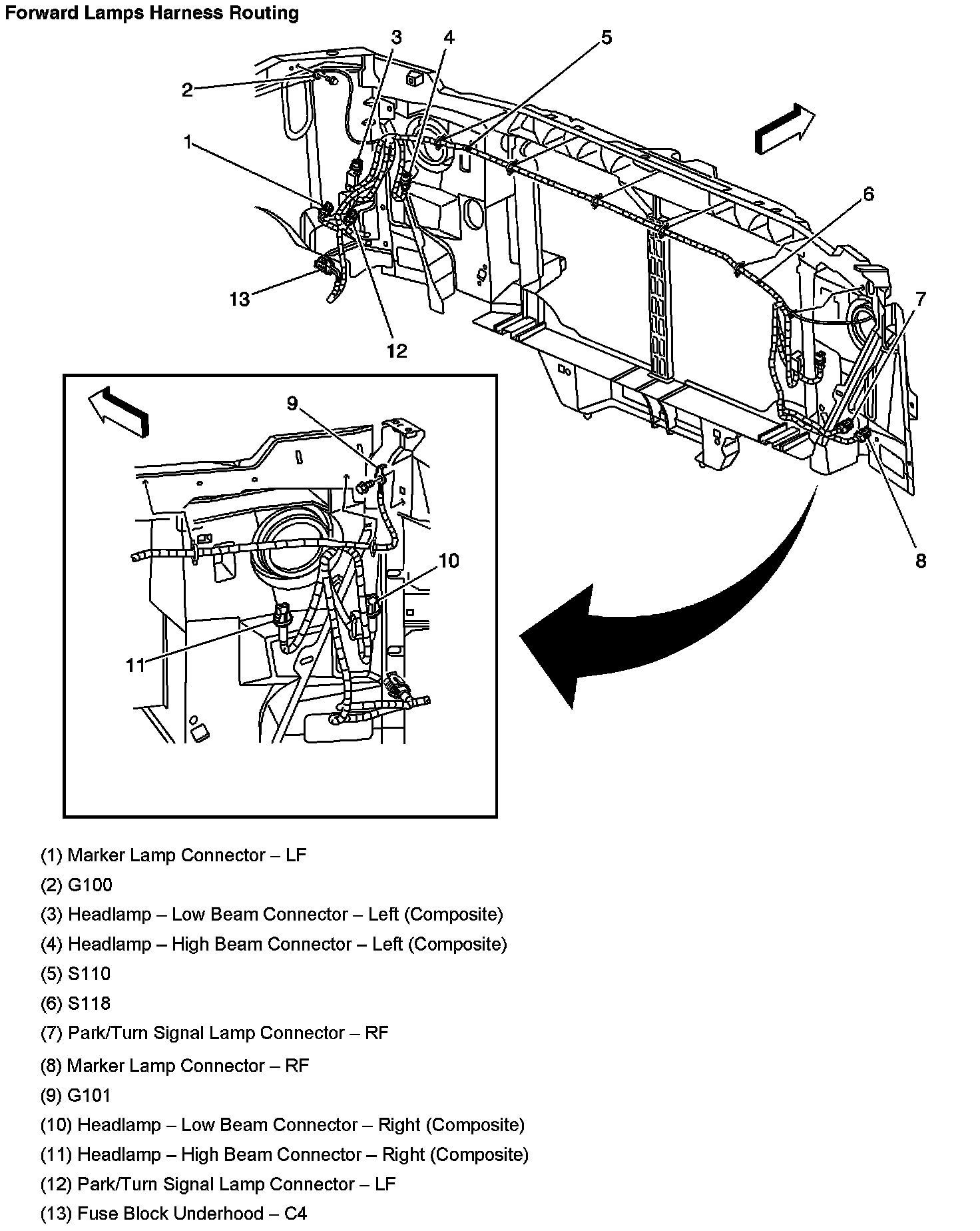Forward Lamps Harness Routing: