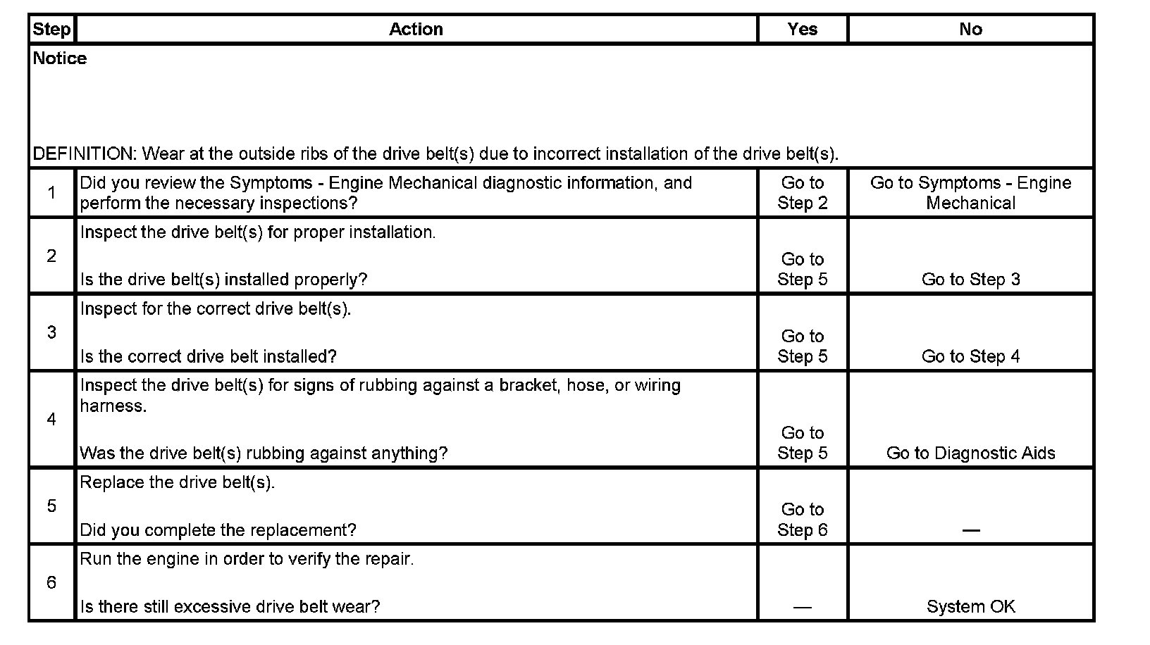 Drive Belt Excessive Wear DiagnosisDiagnostic Aids