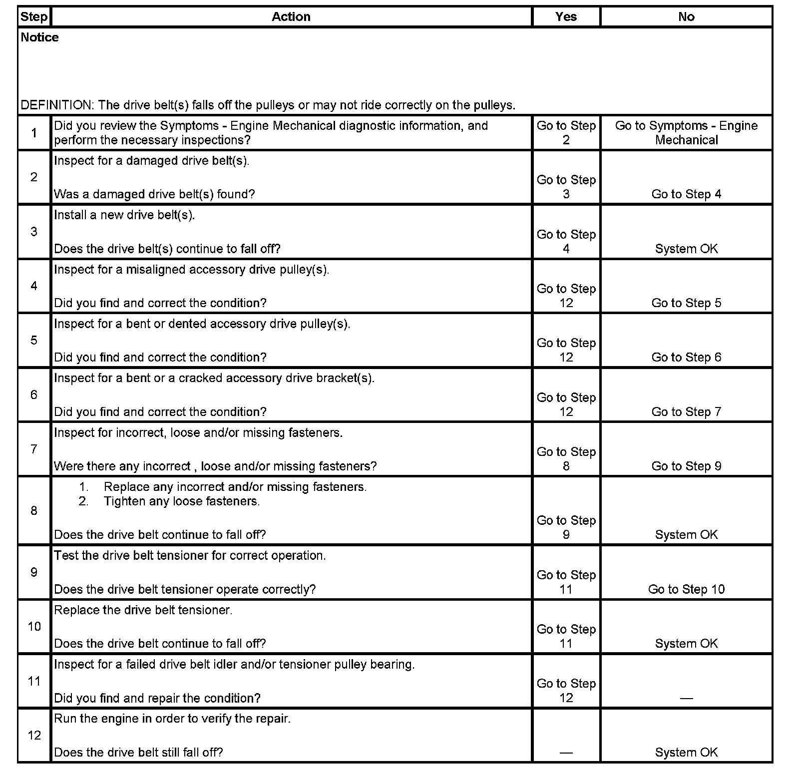 Drive Belt Falls Off DiagnosisDiagnostic Aids