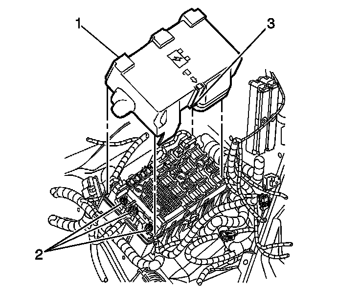 7. Install the junction block cover (1) the tabs (3) should lock.