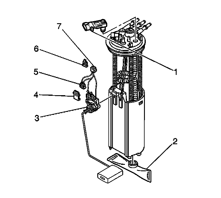 4. Disconnect the electrical connector (7) from under the fuel sender cover.