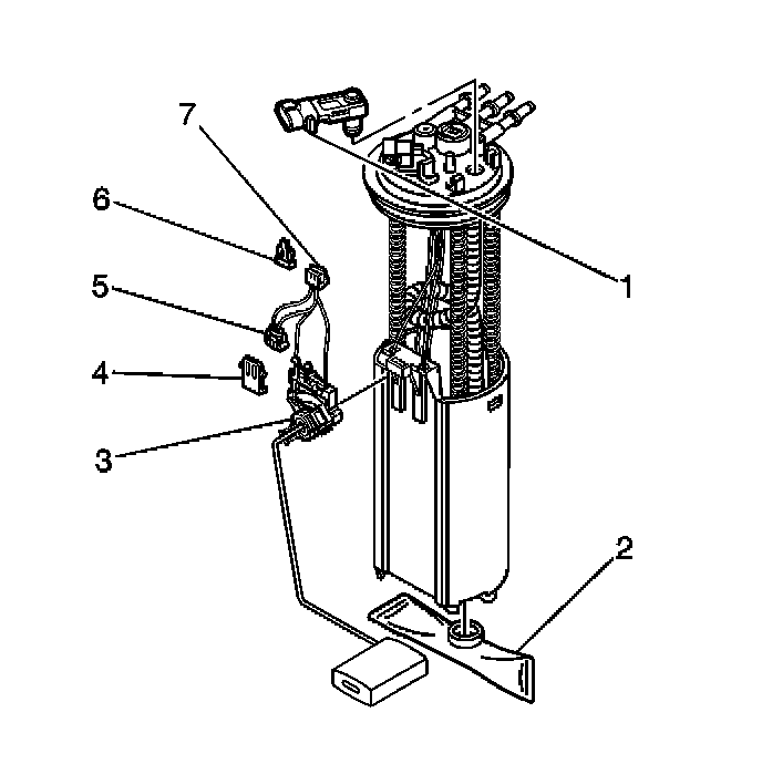3. Connect the electrical connector (7) to the fuel level sensor.