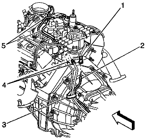 6. Install the EVAP pipe into the bellhousing stud clip (3).
