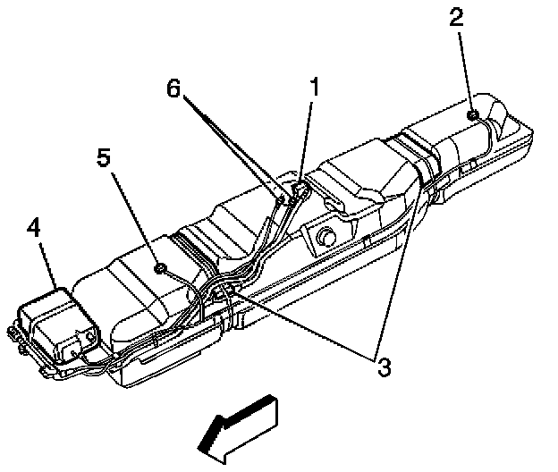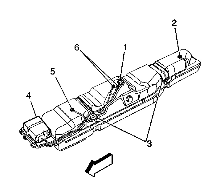 20. Remove the fuel sender assembly and the fuel pipes (6) from the fuel tank and the fuel filter. Refer to Fuel Sender Assembly Replacement.