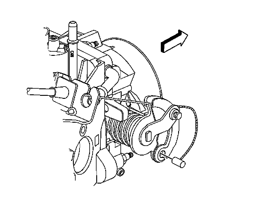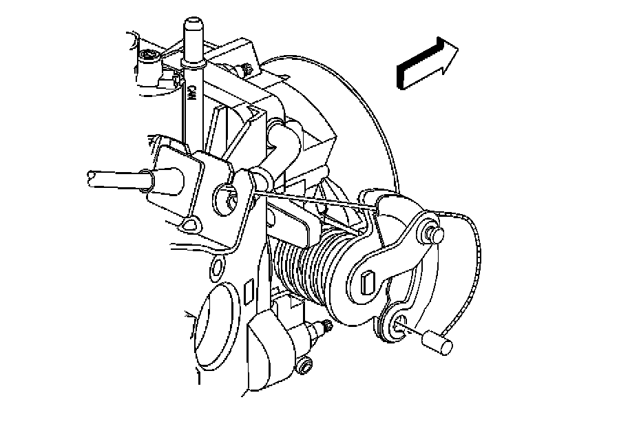 2. Install the accelerator cable through the slot in the accelerator pedal lever (2).