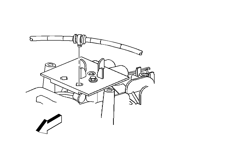 1. Install the accelerator cable through the dash panel. Snap the accelerator cable cover tangs (1) through the dash panel.