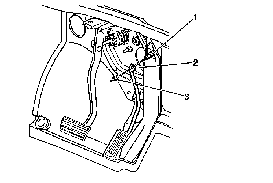 3. Seat the retainer (3) in the accelerator pedal lever (2).