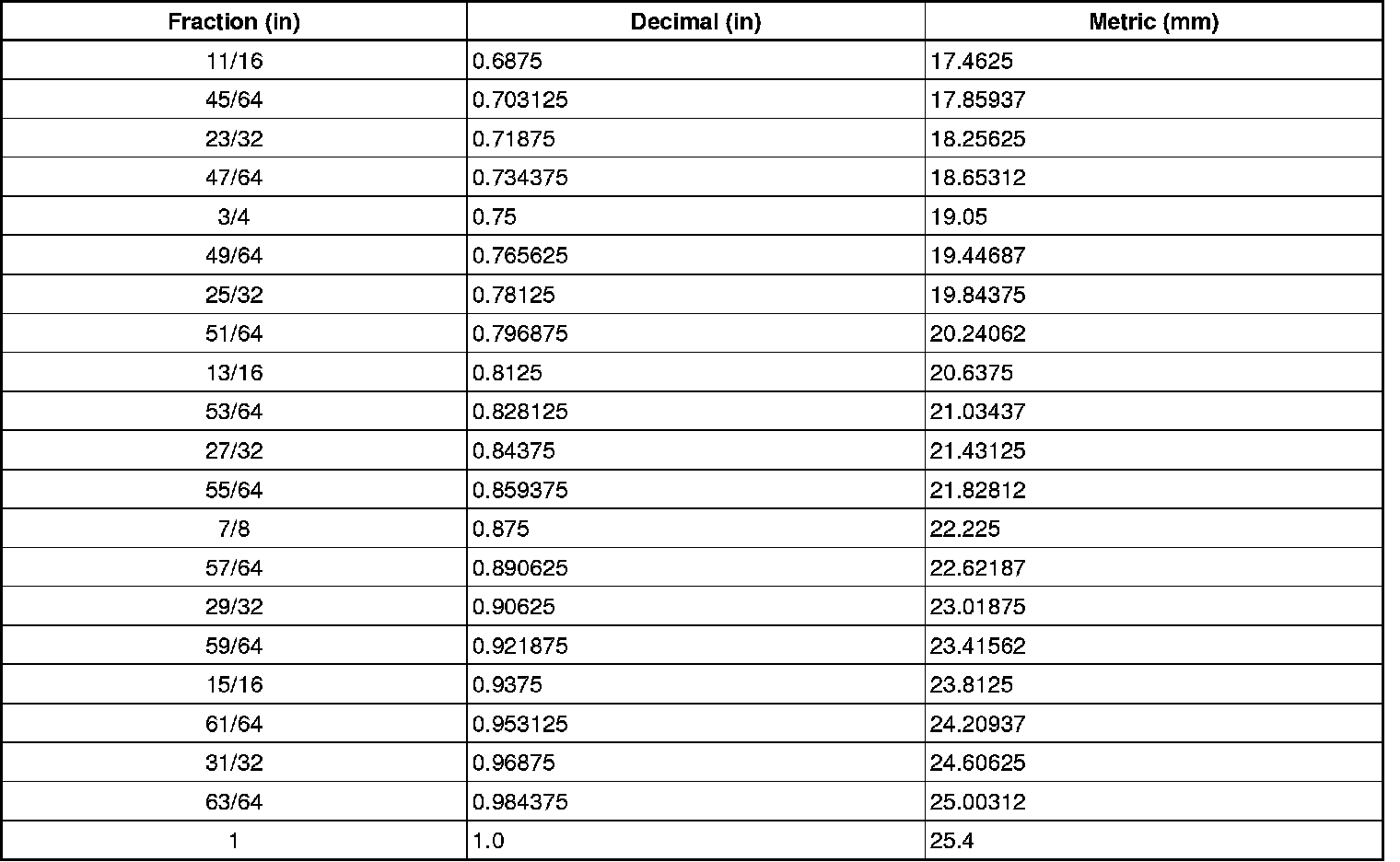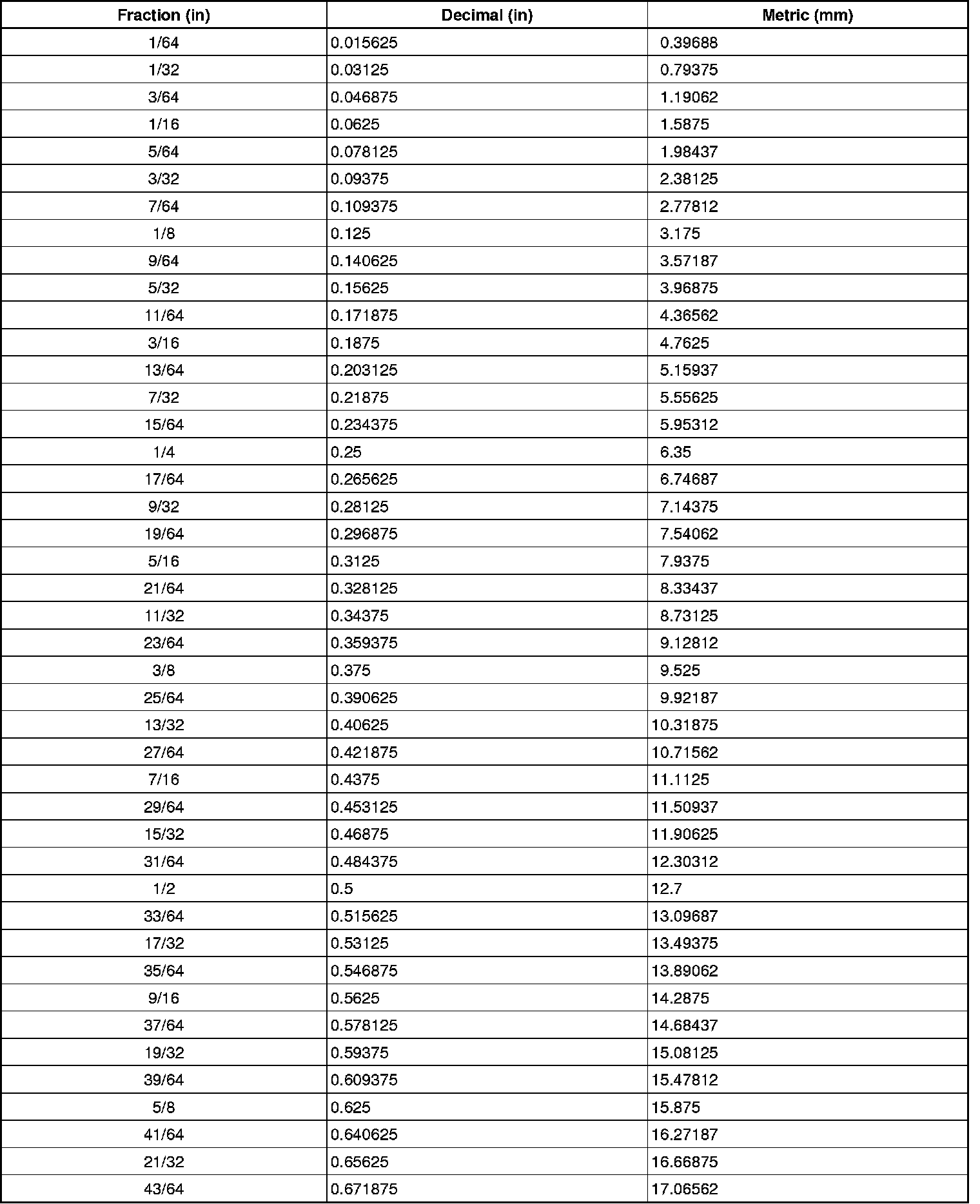 Equivalents - Decimal and Metric