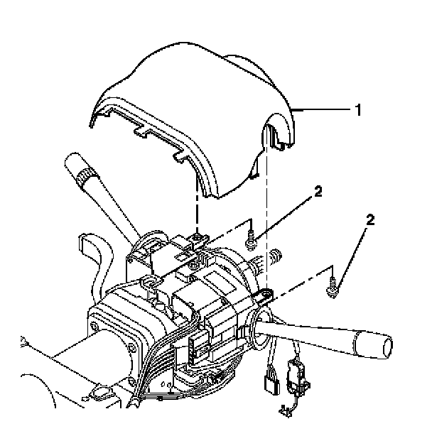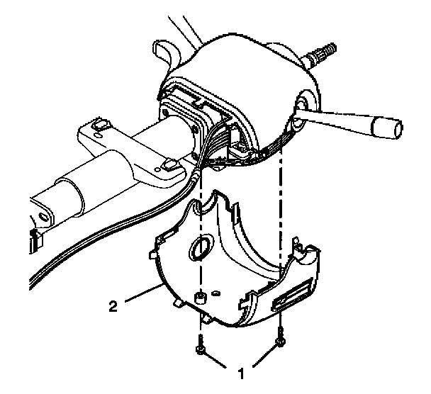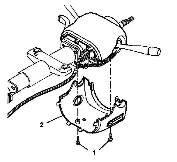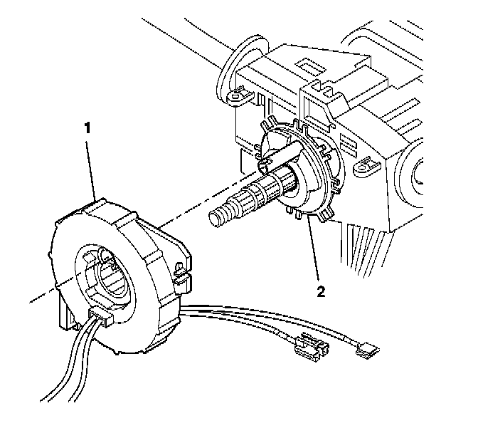 3. Align the SIR coil assembly (1) with the horn tower on the turn signal cancel cam assembly (2).