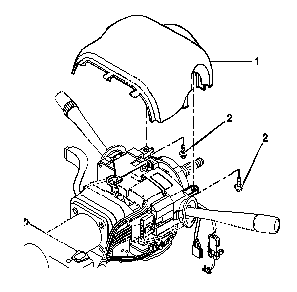 7. Install the upper trim cover (1) and secure by using 2 TORX(R) head screws (2).