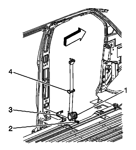 6. Disengage the front seat belt retractor guide (4) from the pillar.