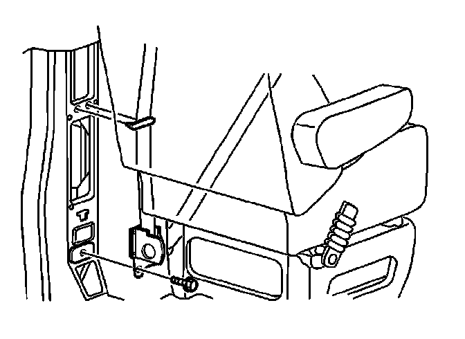 2. Install the shoulder/seat belt retractor retaining bolt to the lower pillar.