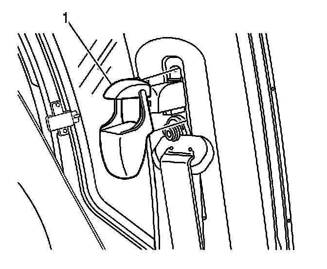 1. Using a flat bladed tool, remove the shoulder/seat belt guide adjuster cover (1).