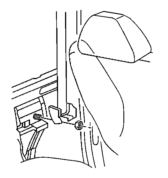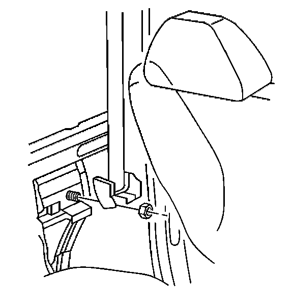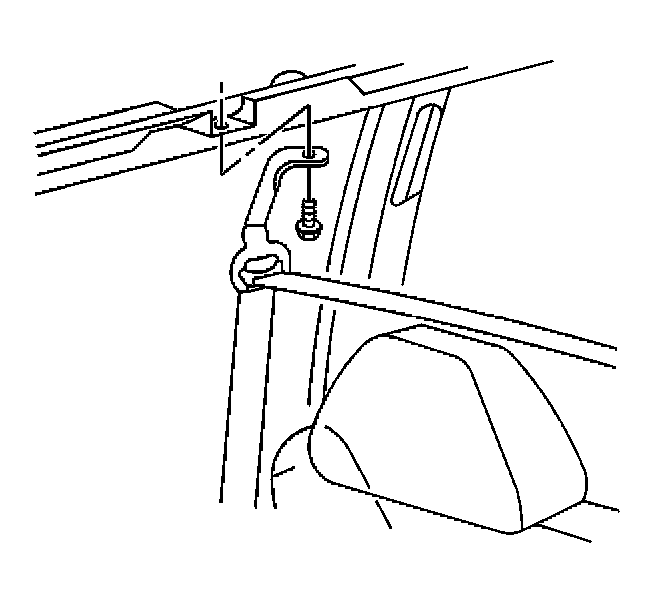 3. Remove the upper seat belt guide retaining bolt from the seat belt guide.