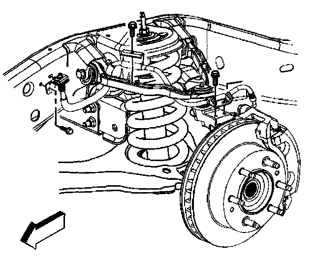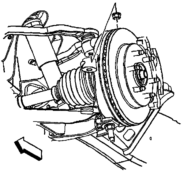 8. Remove the brake hose bracket retaining bolt from the steering knuckle.